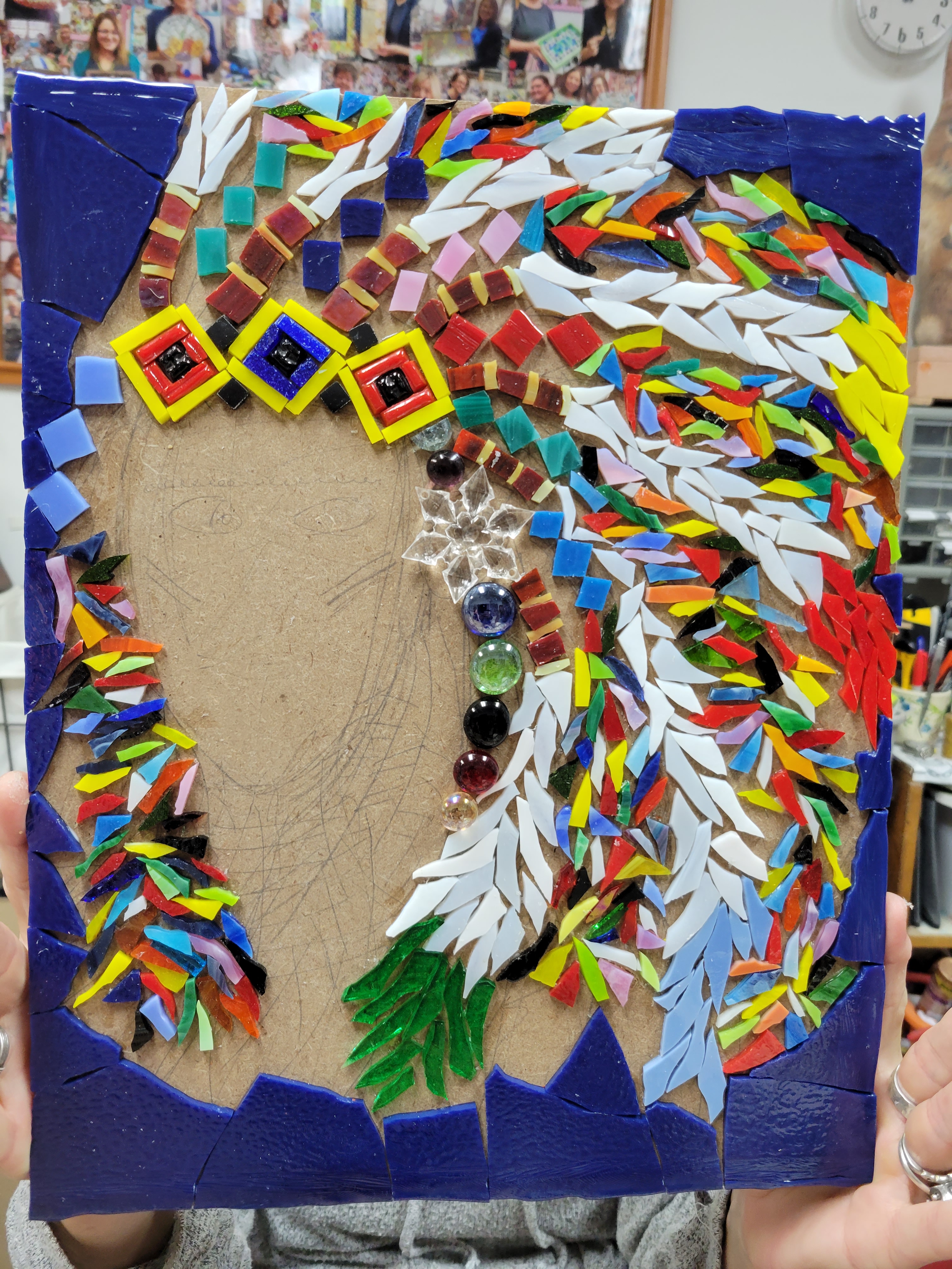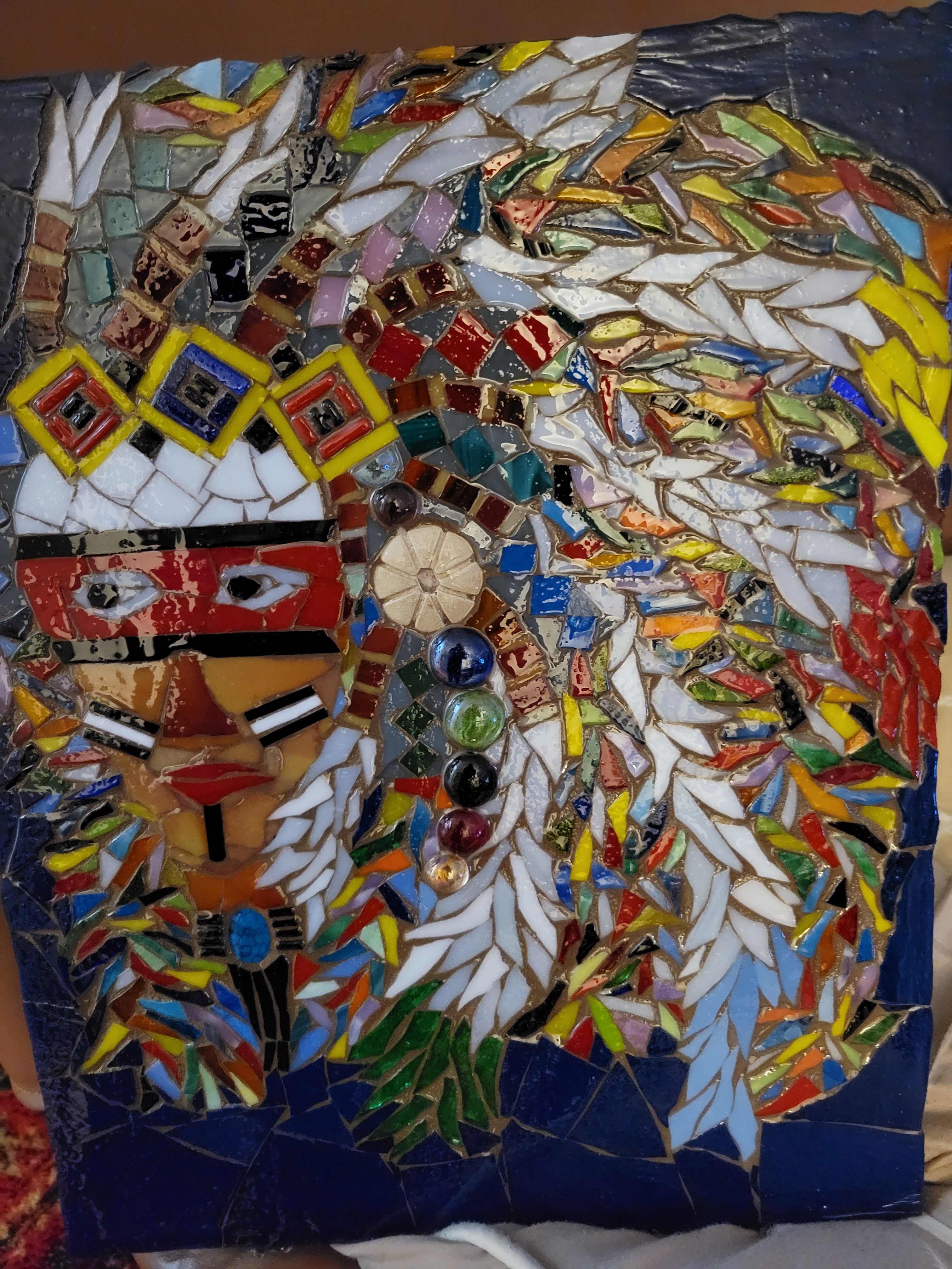 a man or a lion, beautiful imperfections, colorful creations, creative process, failures and successes, Indian headdress, Mosaic projects, trying and trying again, war face paint
