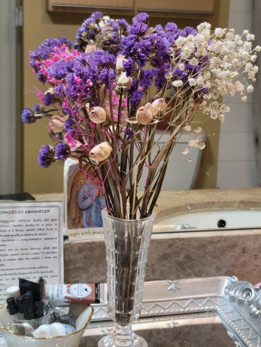 (I still have the little purple flowers that he gave me on our date.  I dried them and kept them in a vase on my counter in my bathroom.  I am not sure why I did that.  I never kept any flowers from any date – something about not wanting to think of them)