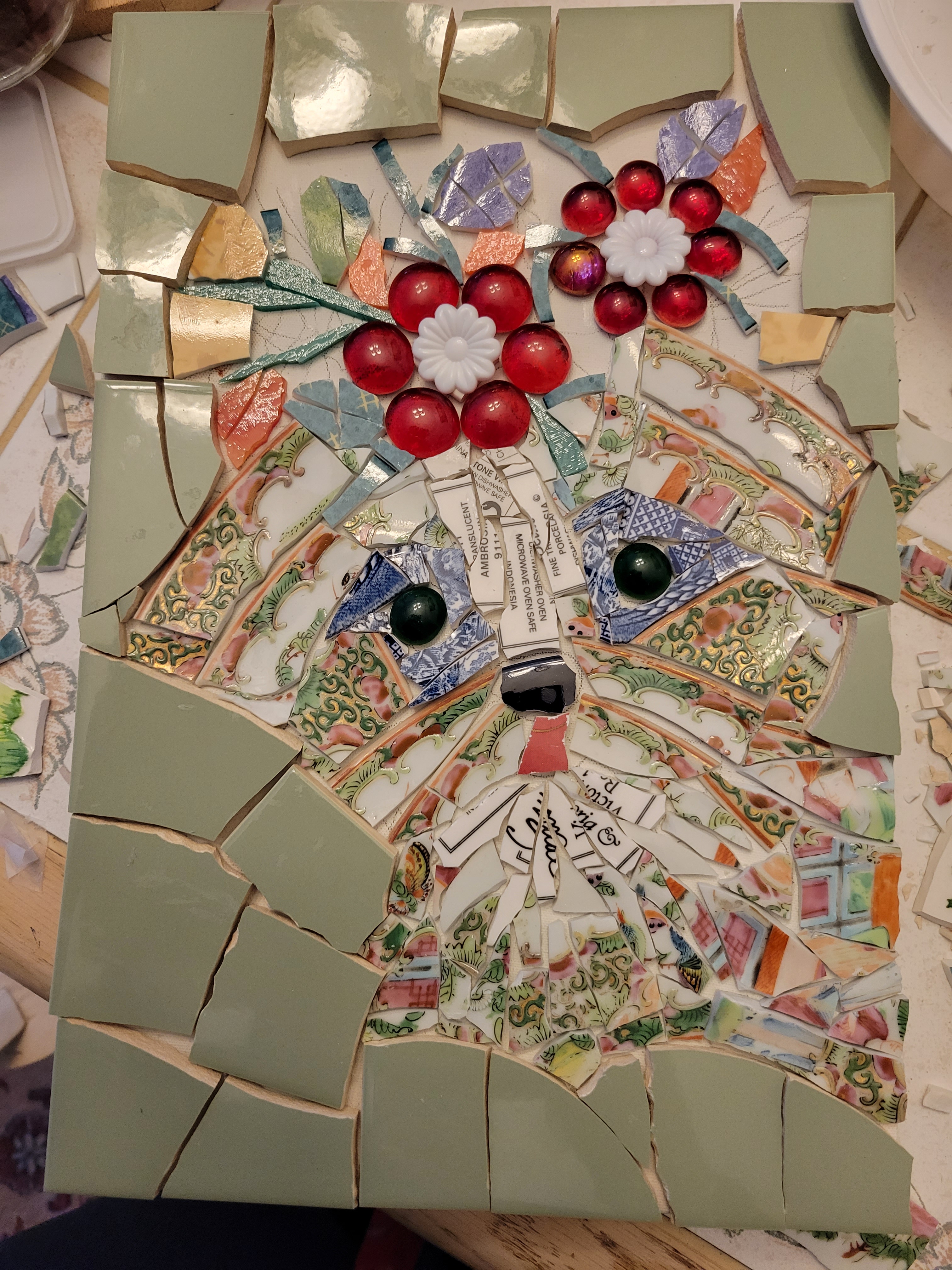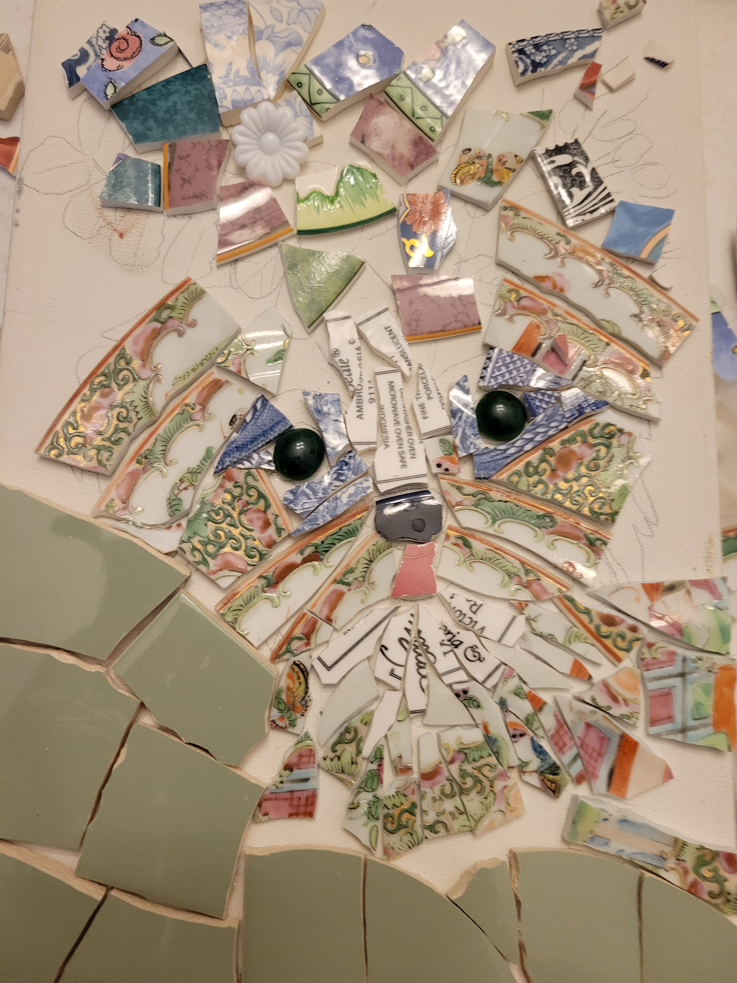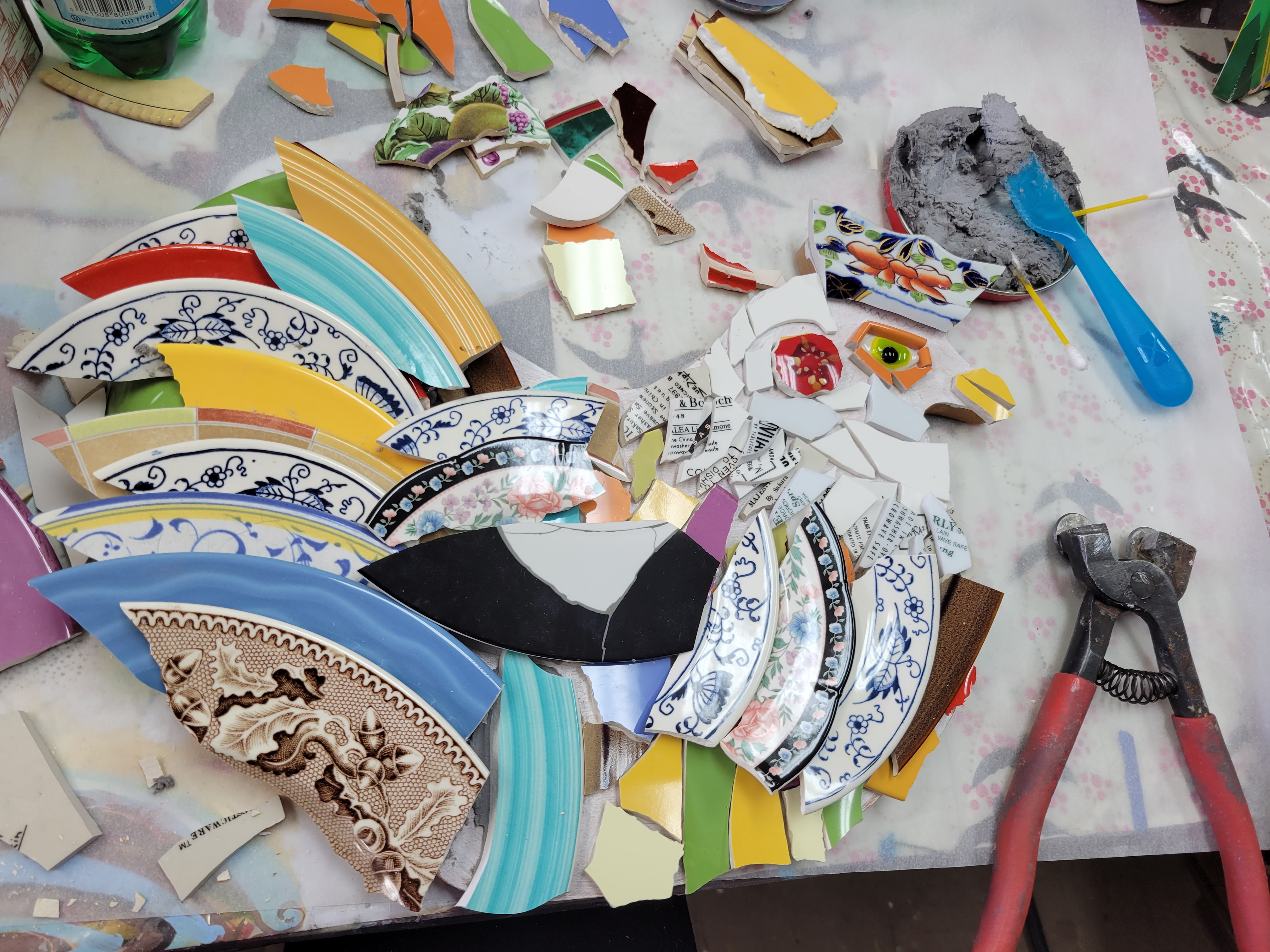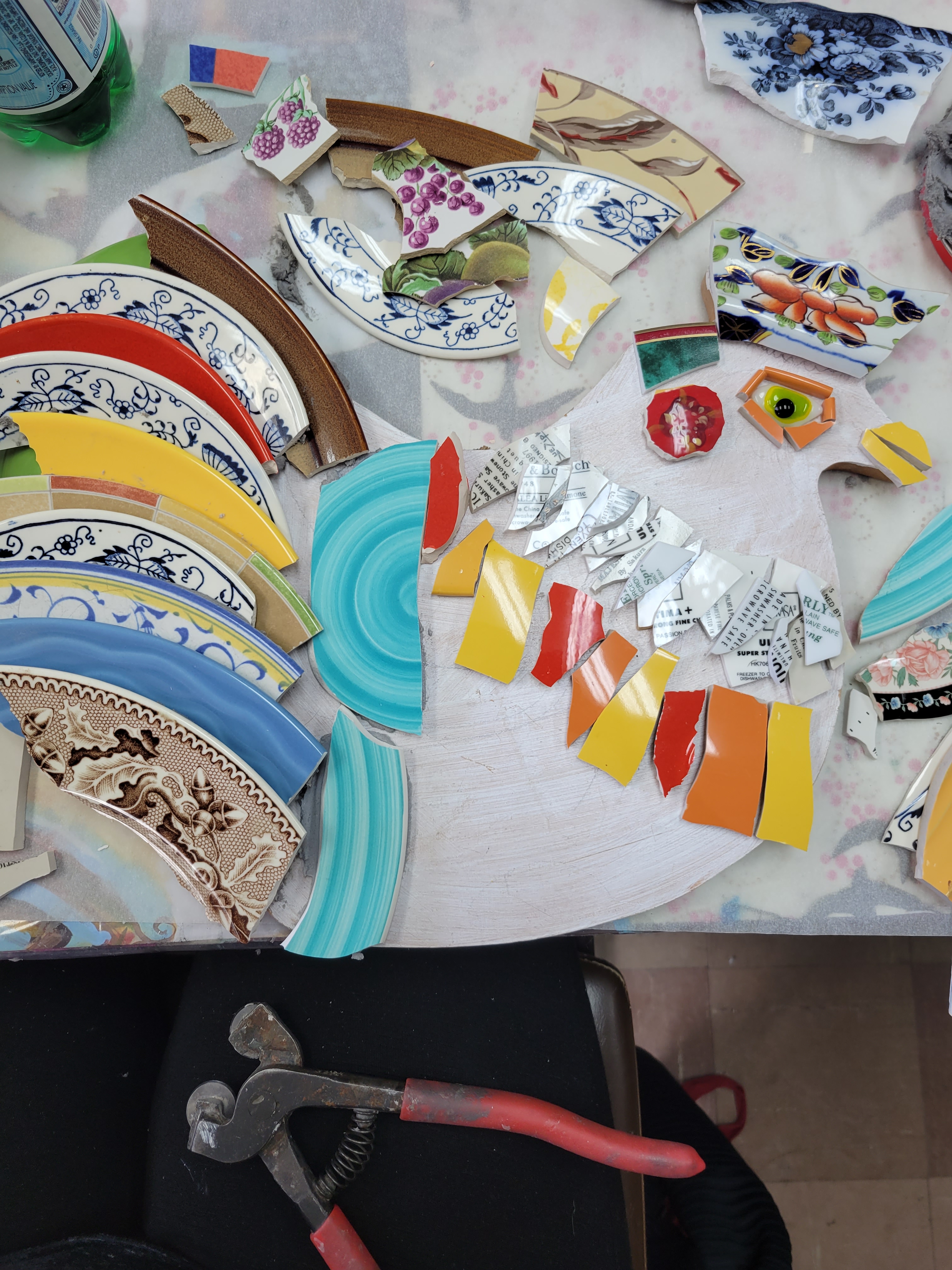On Saturday morning I went to the mosaic studio.  I had missed the prior Saturday because my date from Boston was here. I didn’t want to miss it again.