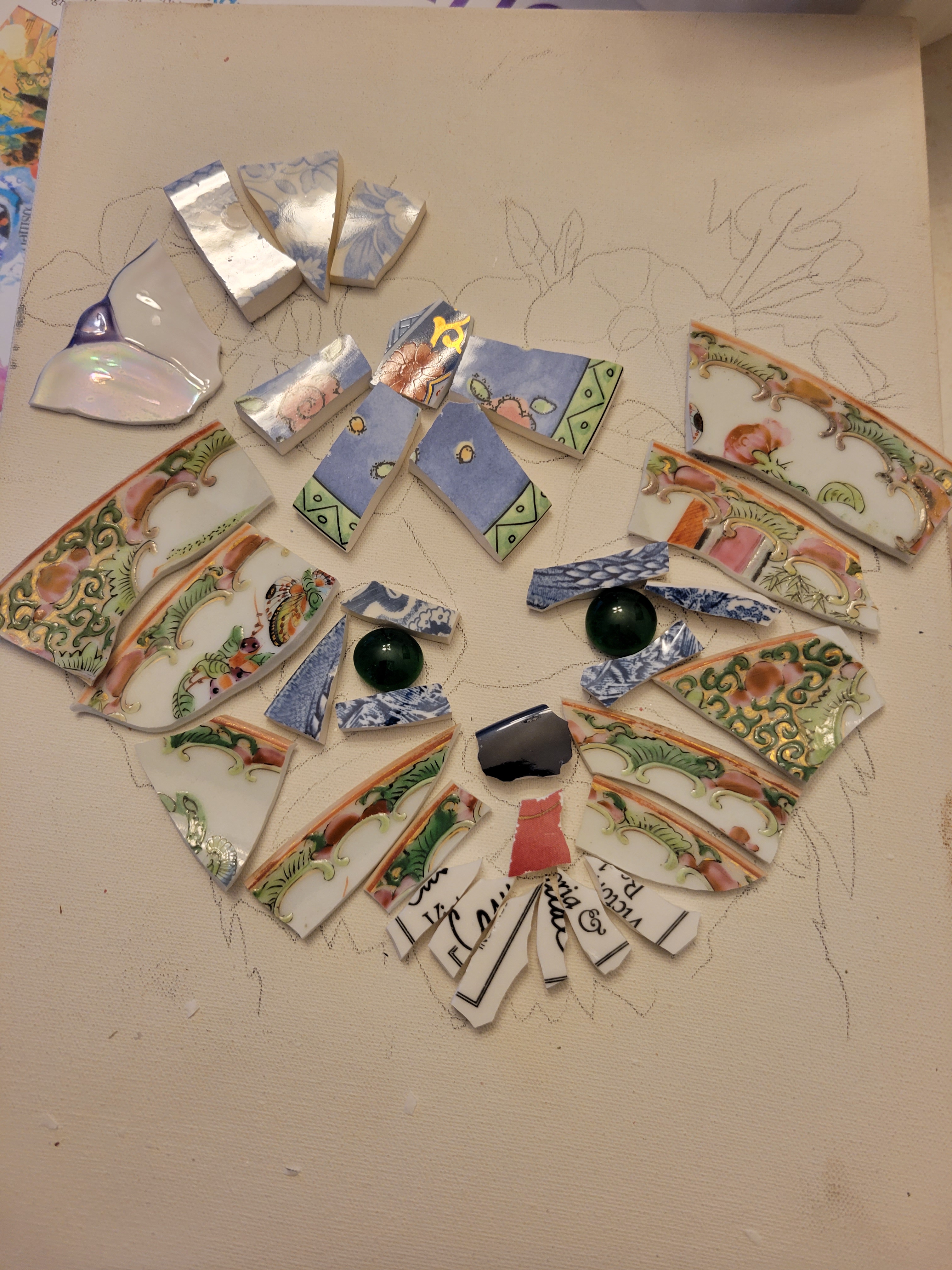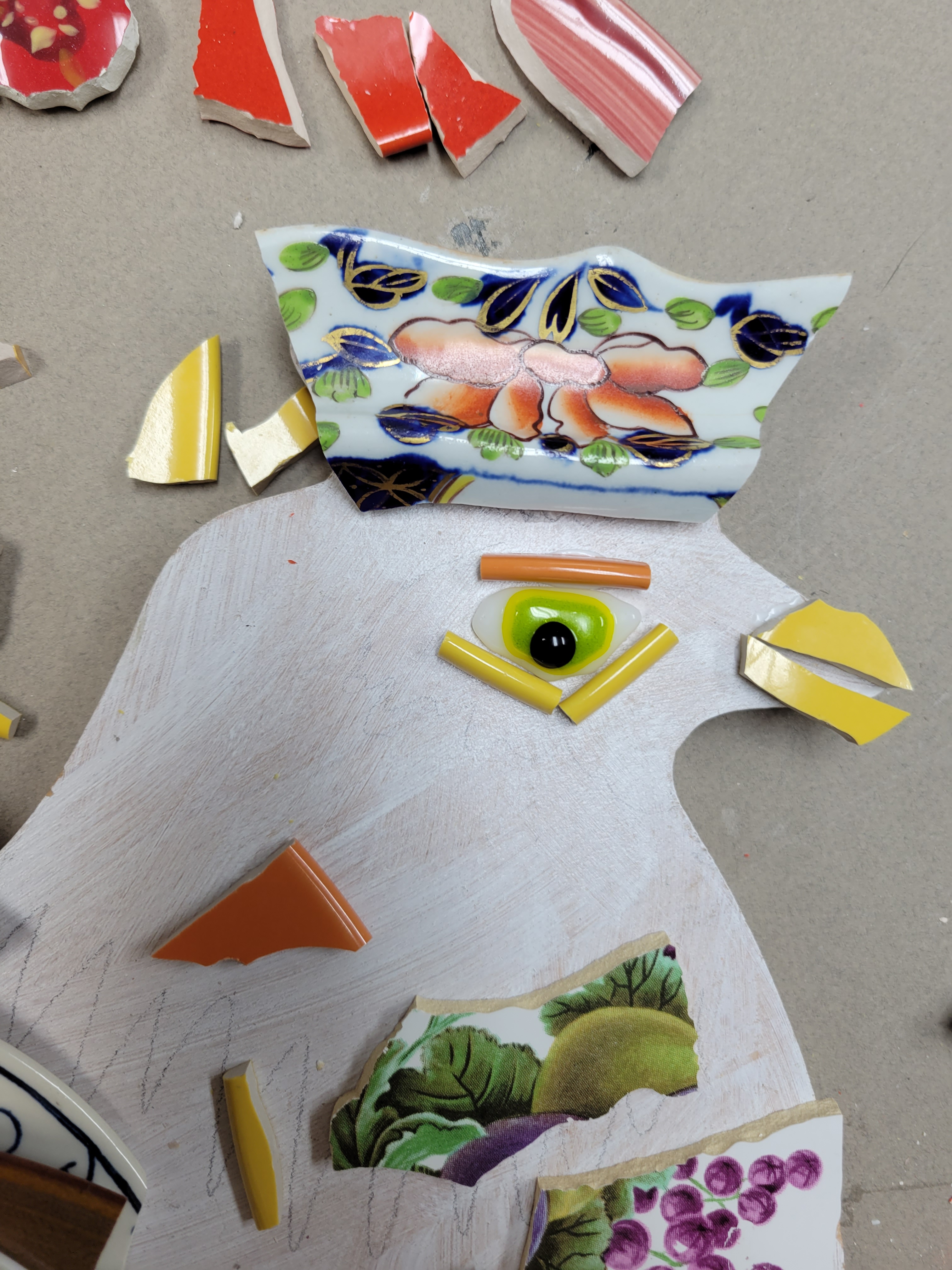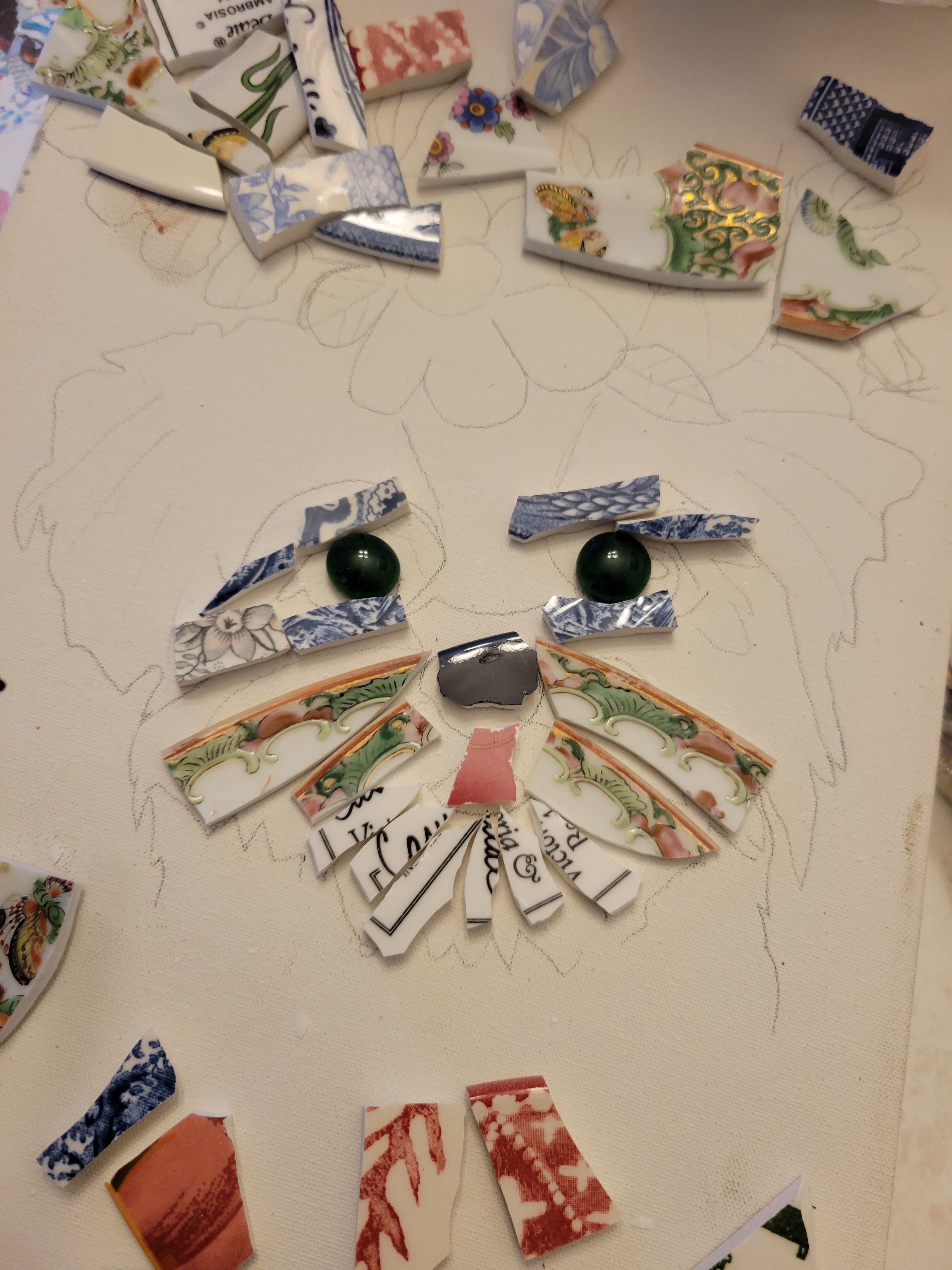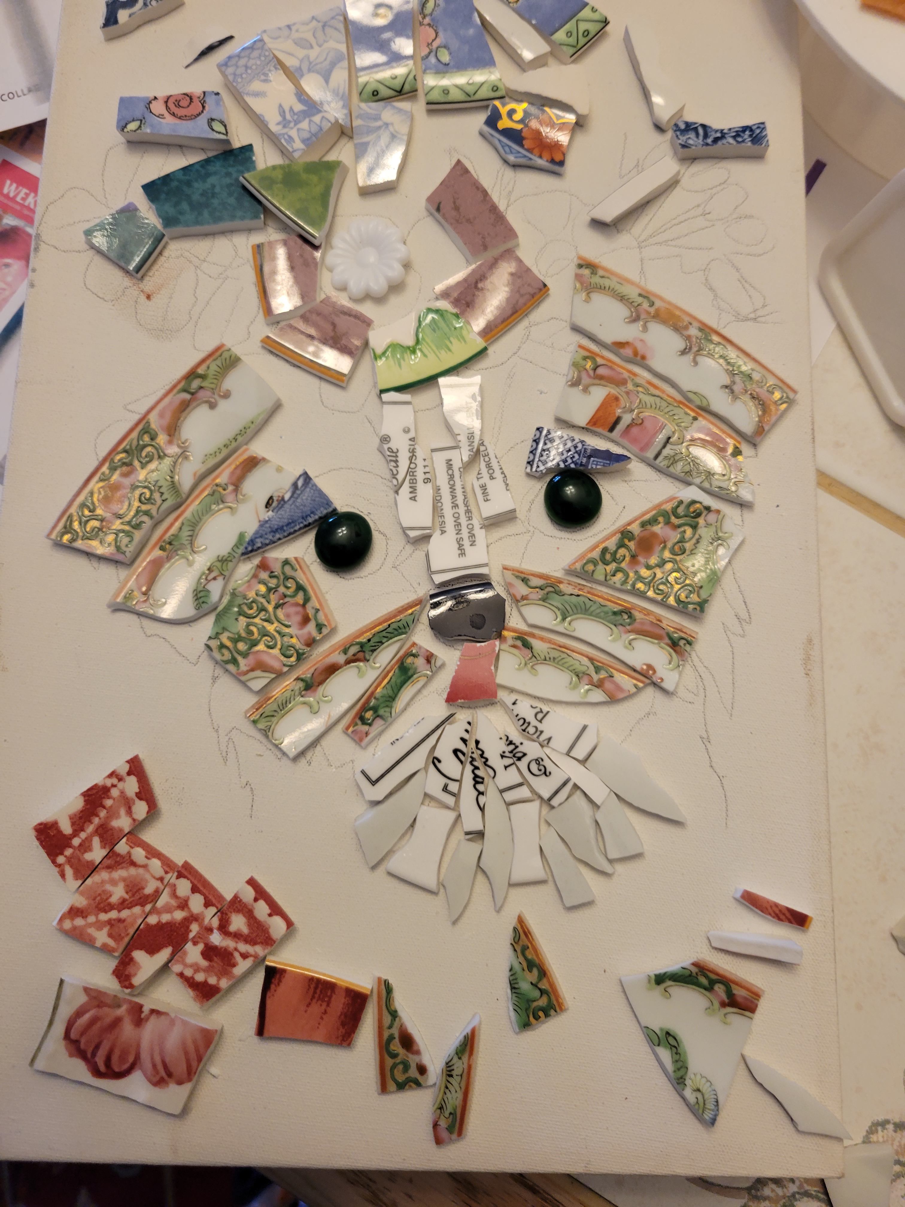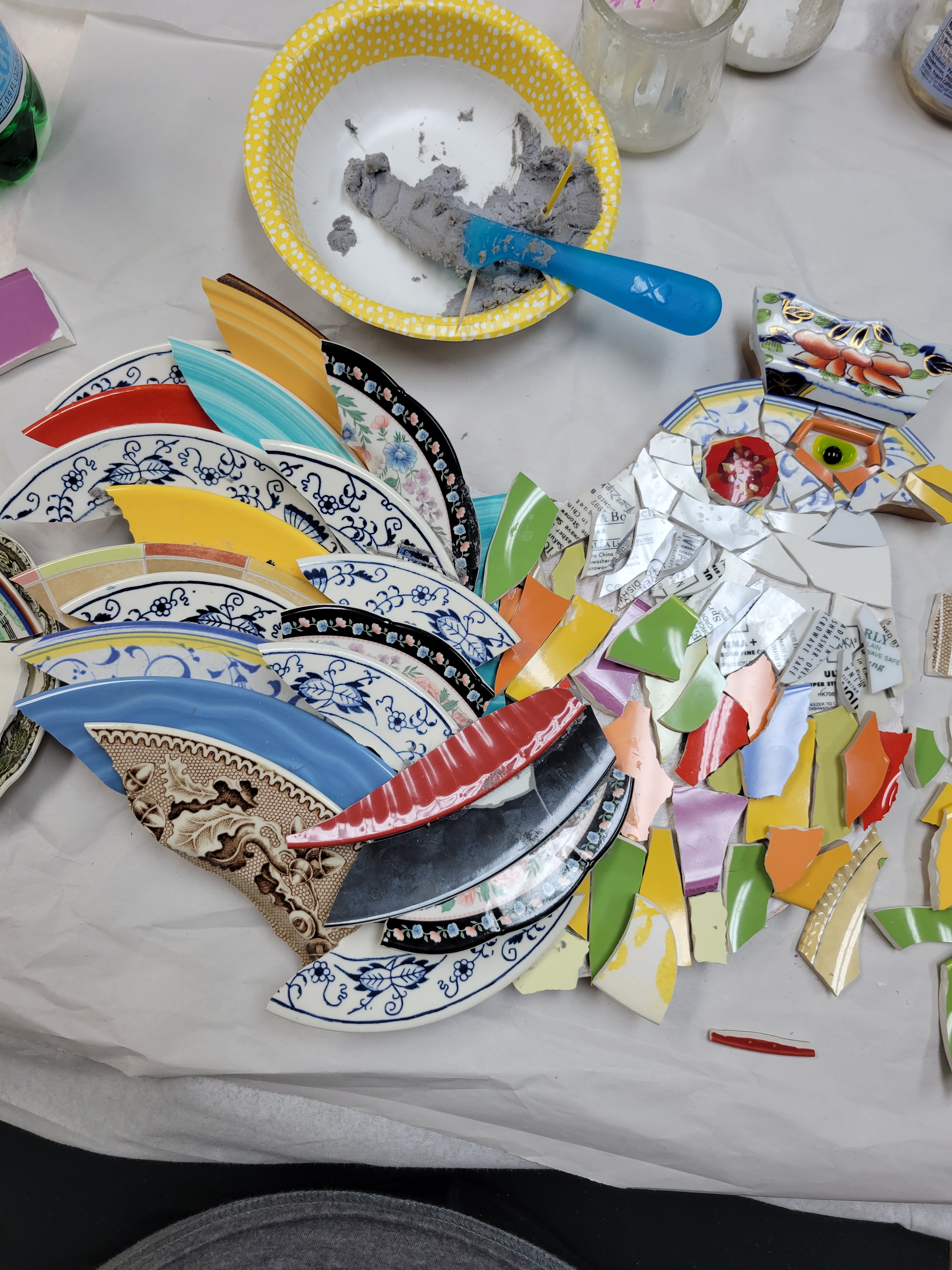 On Saturday morning I went to the mosaic studio.  I had missed the prior Saturday because my date from Boston was here. I didn’t want to miss it again.