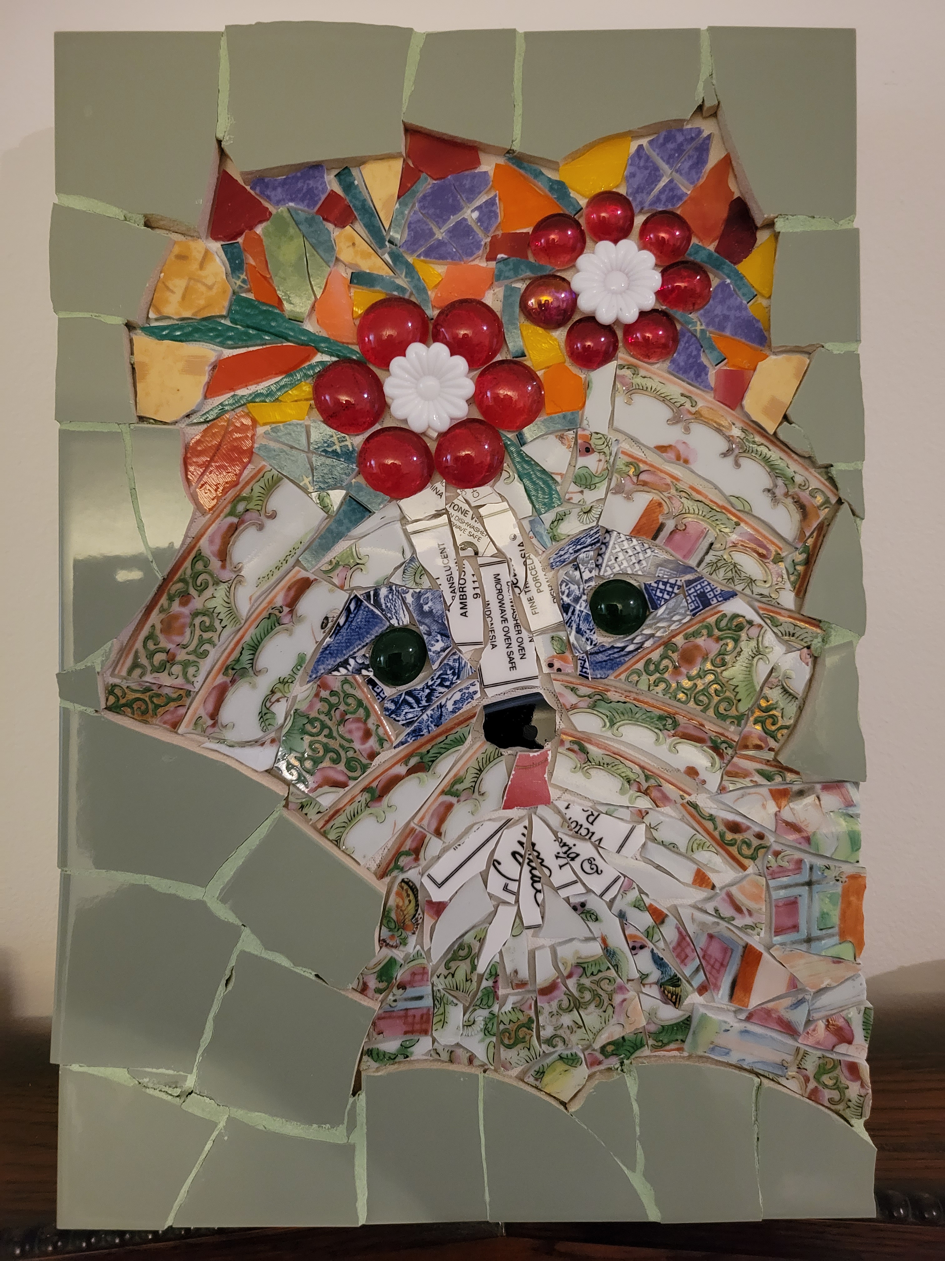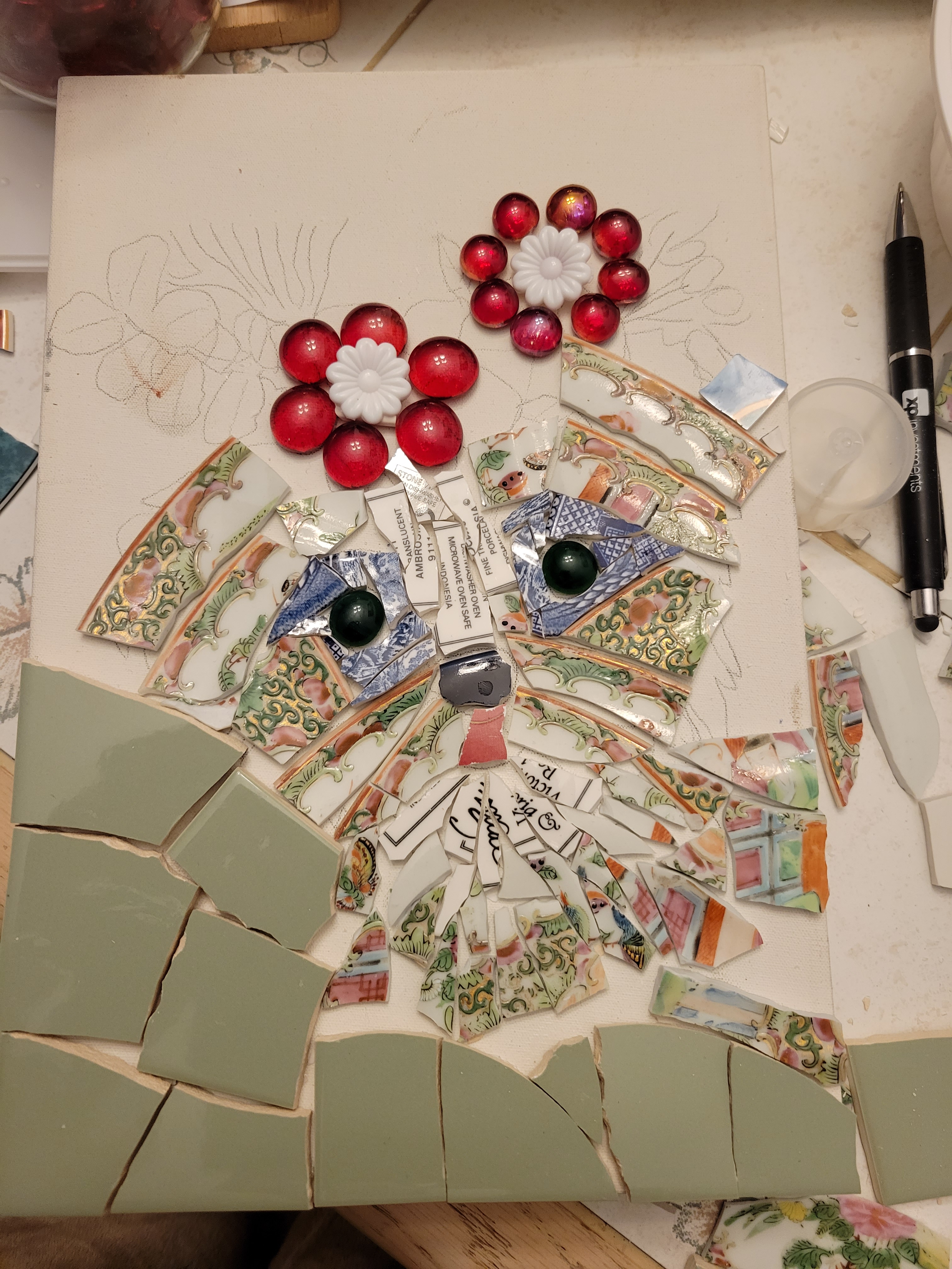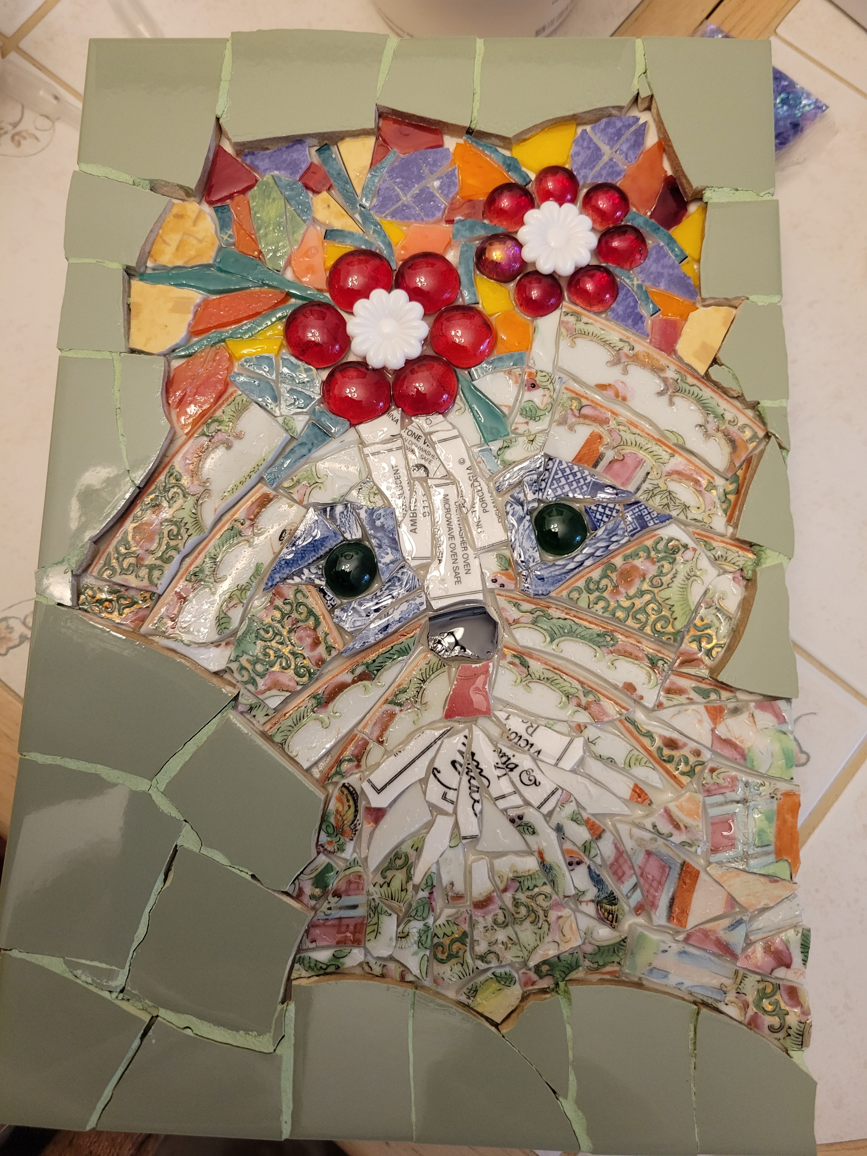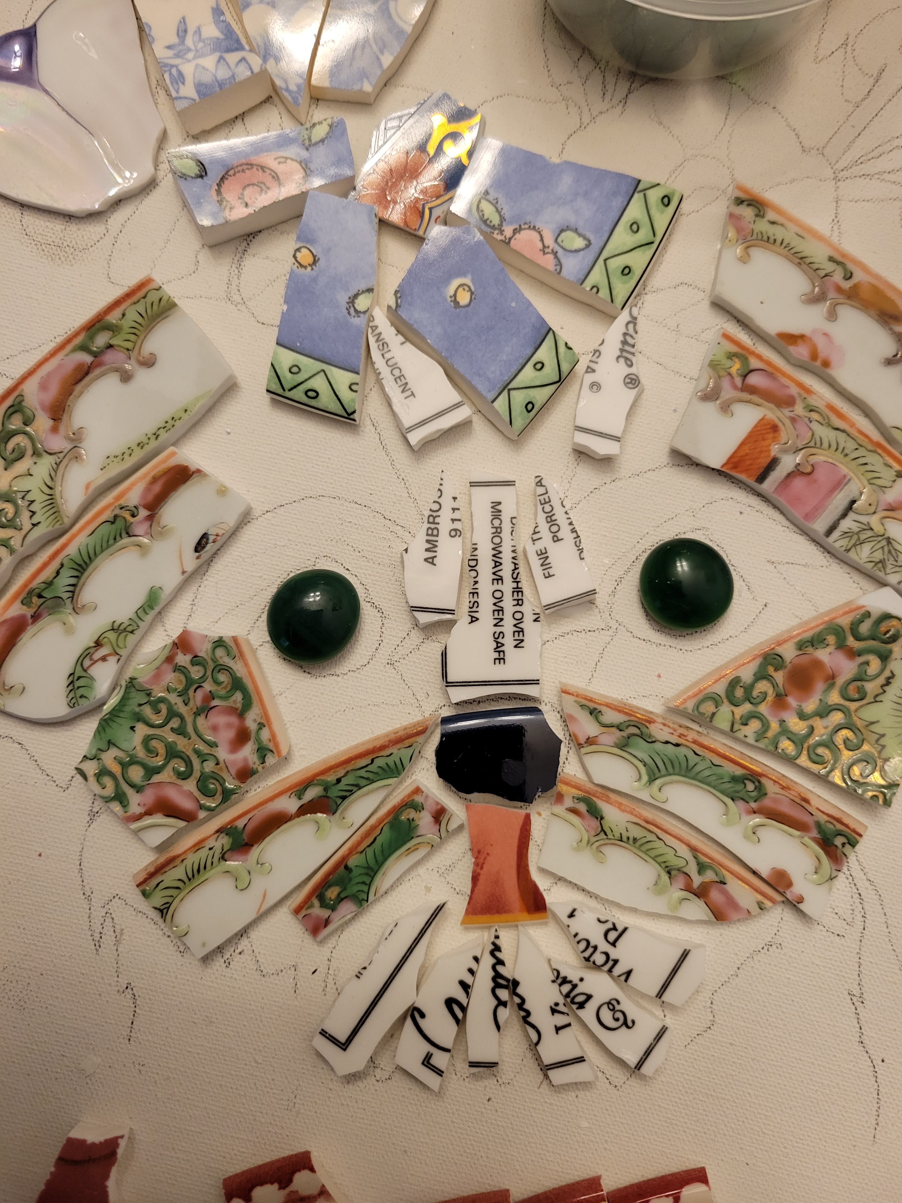 On Saturday morning I went to the mosaic studio.  I had missed the prior Saturday because my date from Boston was here. I didn’t want to miss it again.