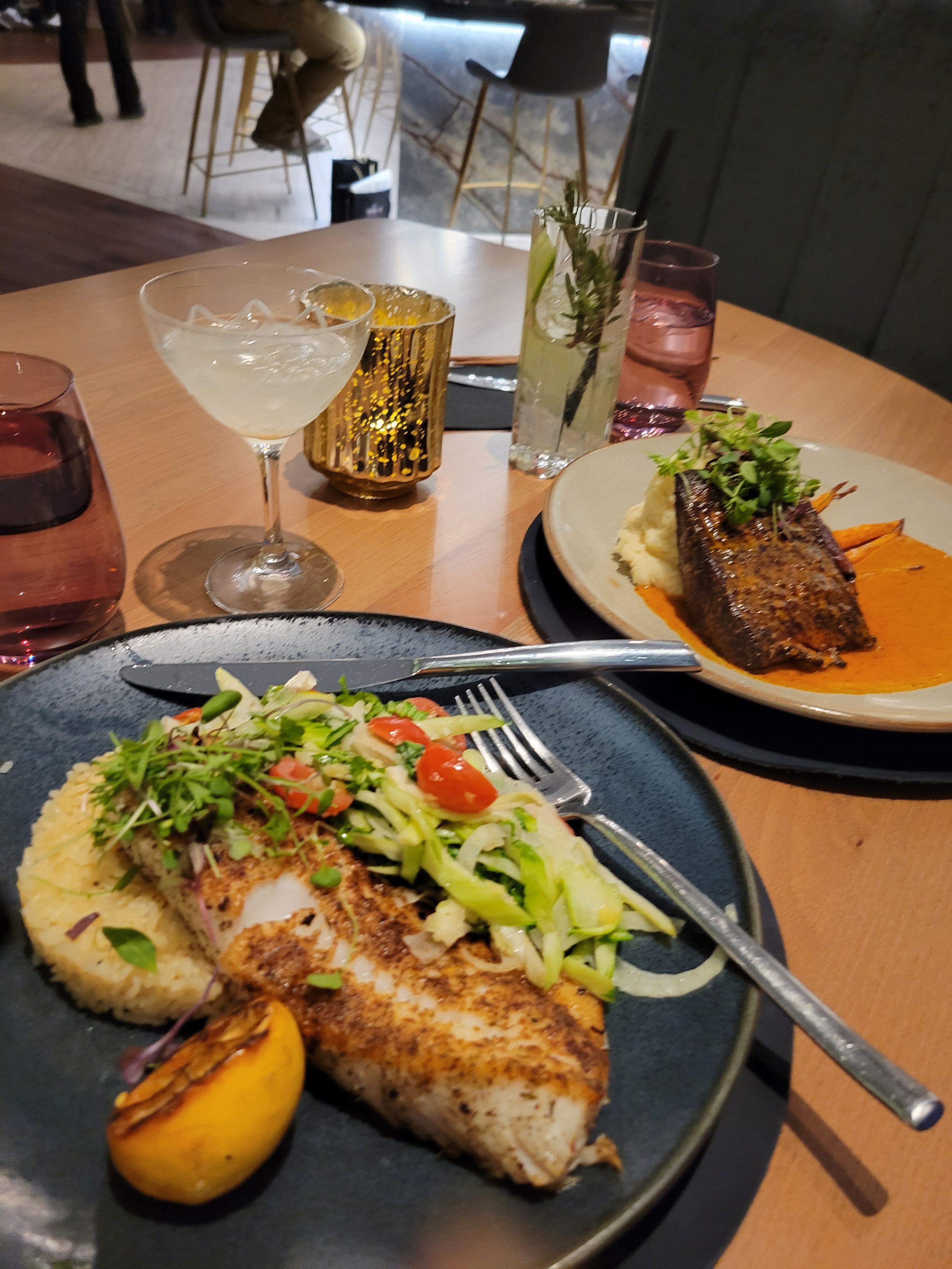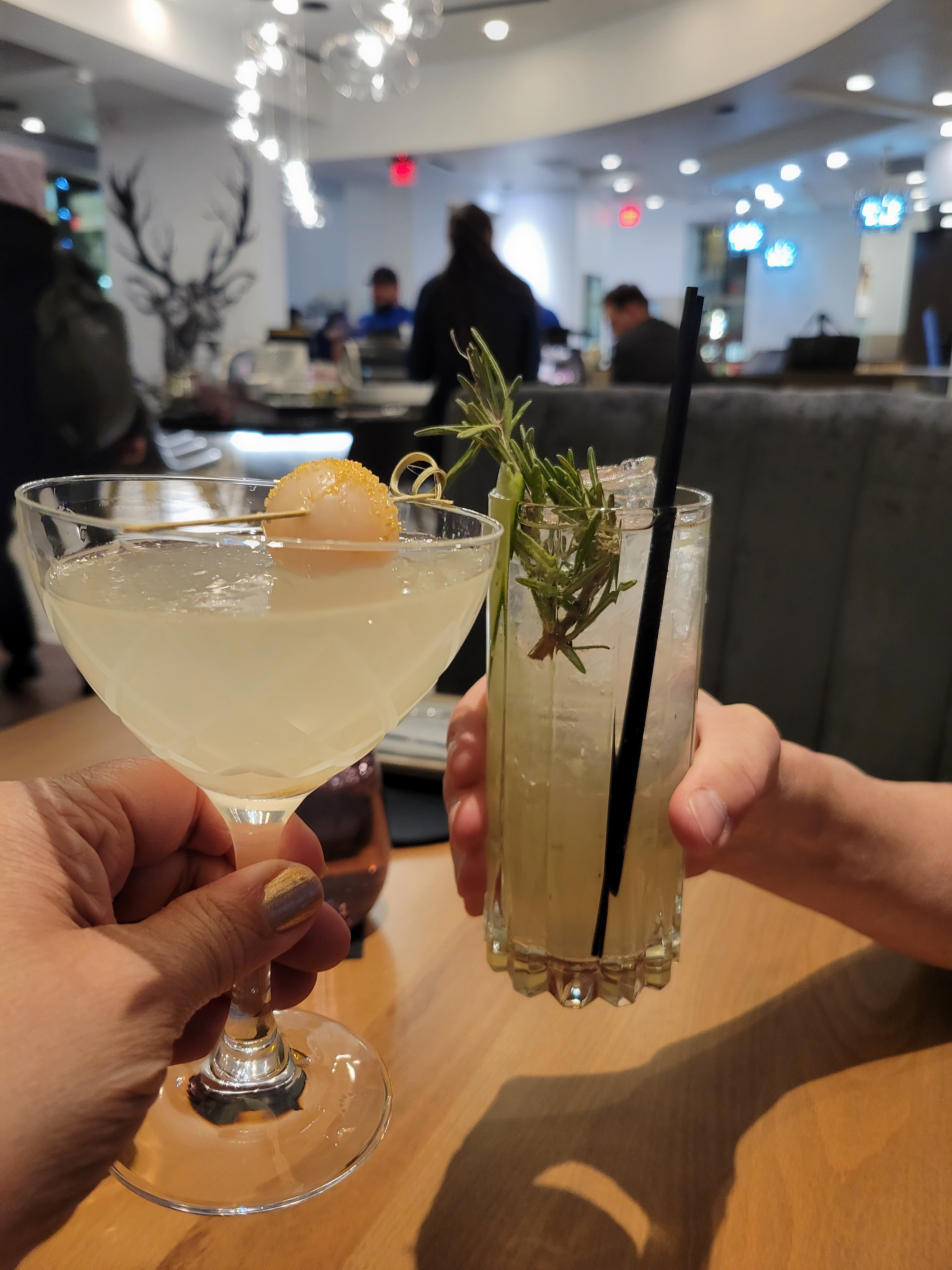 • Aqua Terra Steak Sushi in Salt Lake. The best ever! Everything about this restaurant was awesome. He had sushi, and salmon. I had the black cod. To drink I had the Golden Goose and he had the Garden Party. Best drinks ever! We shared a chocolate tart for dessert.