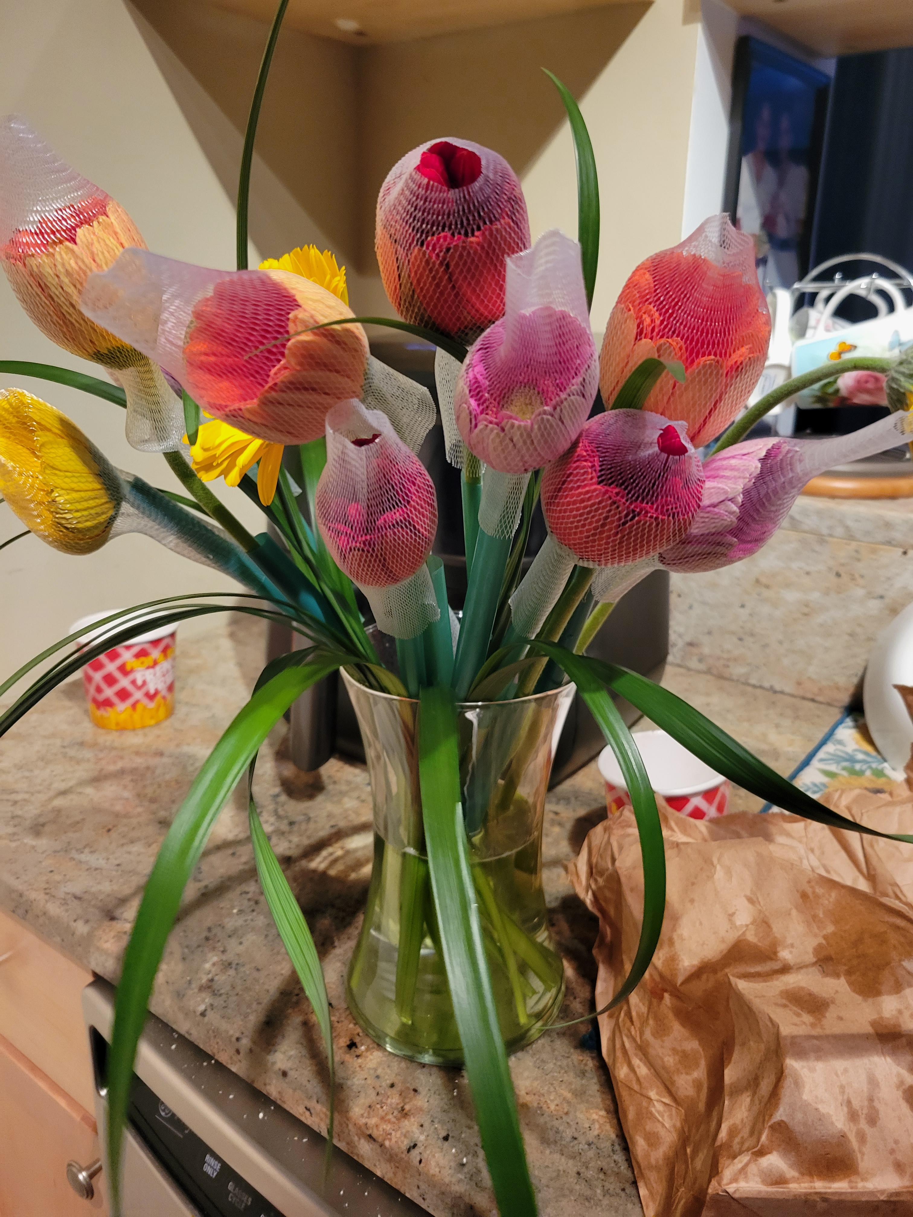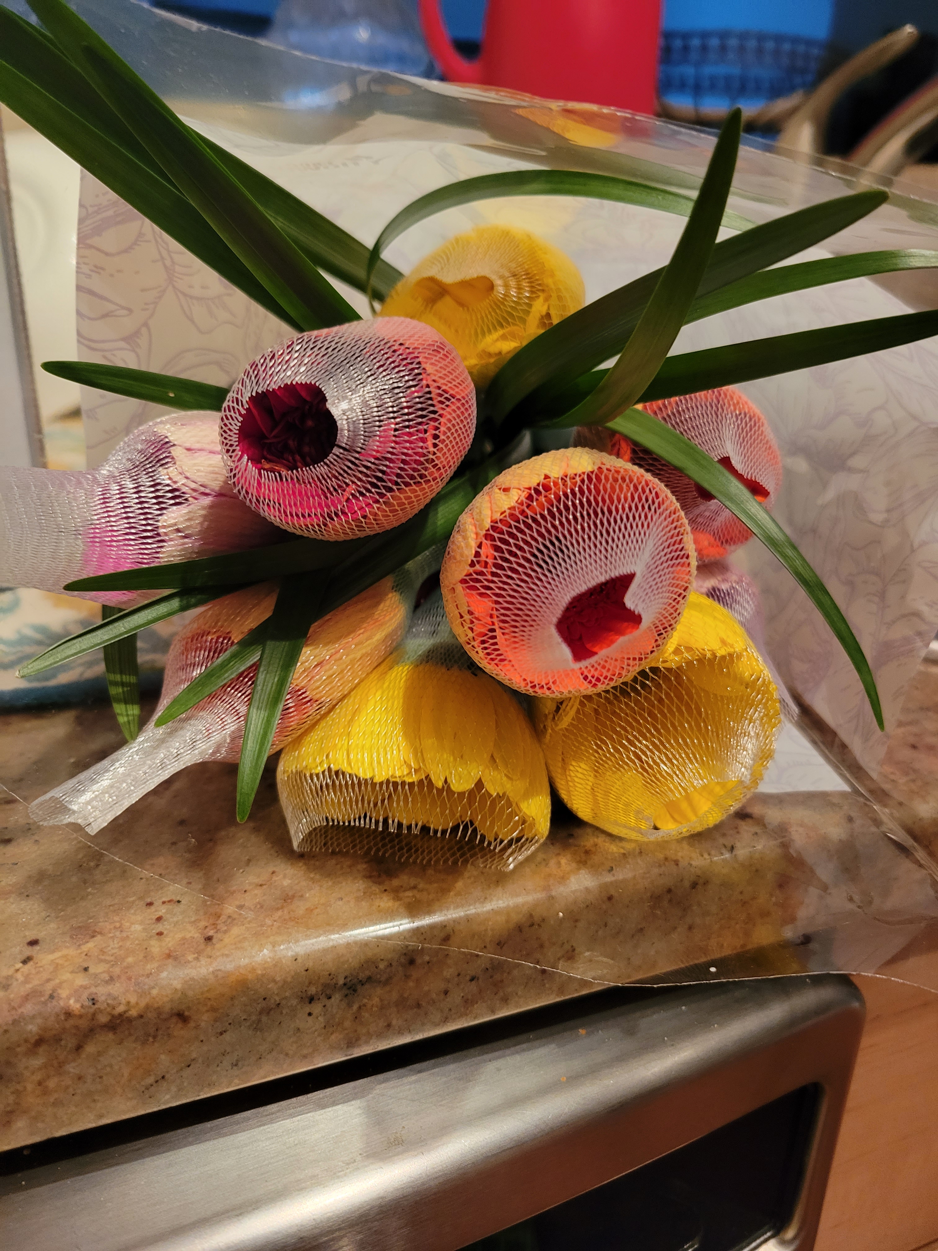 If you recall the first time that M sent me flowers, I felt that 1-800Flowers didn’t do a good job.  I wrote about it here: https://blessedwithastarontheforehead.com/2023/03/09/they-are-yellow-but-they-can-also-be-red-they-love-the-sun-and-they-make-my-heart-sing/