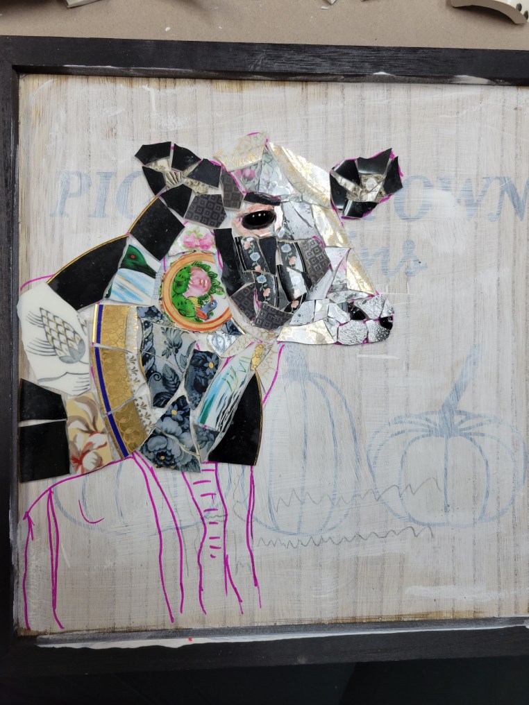 A cow in love… with blue flowers