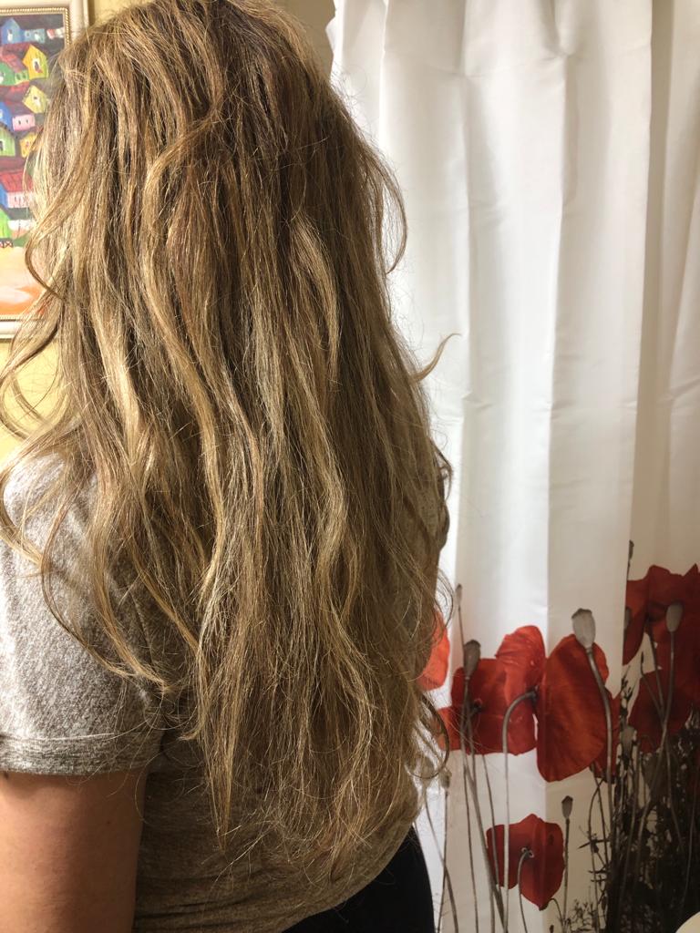 When he was done and started blow-drying my hair we both realized I was now blonde.  He had put in too many highlights and they were all very light.