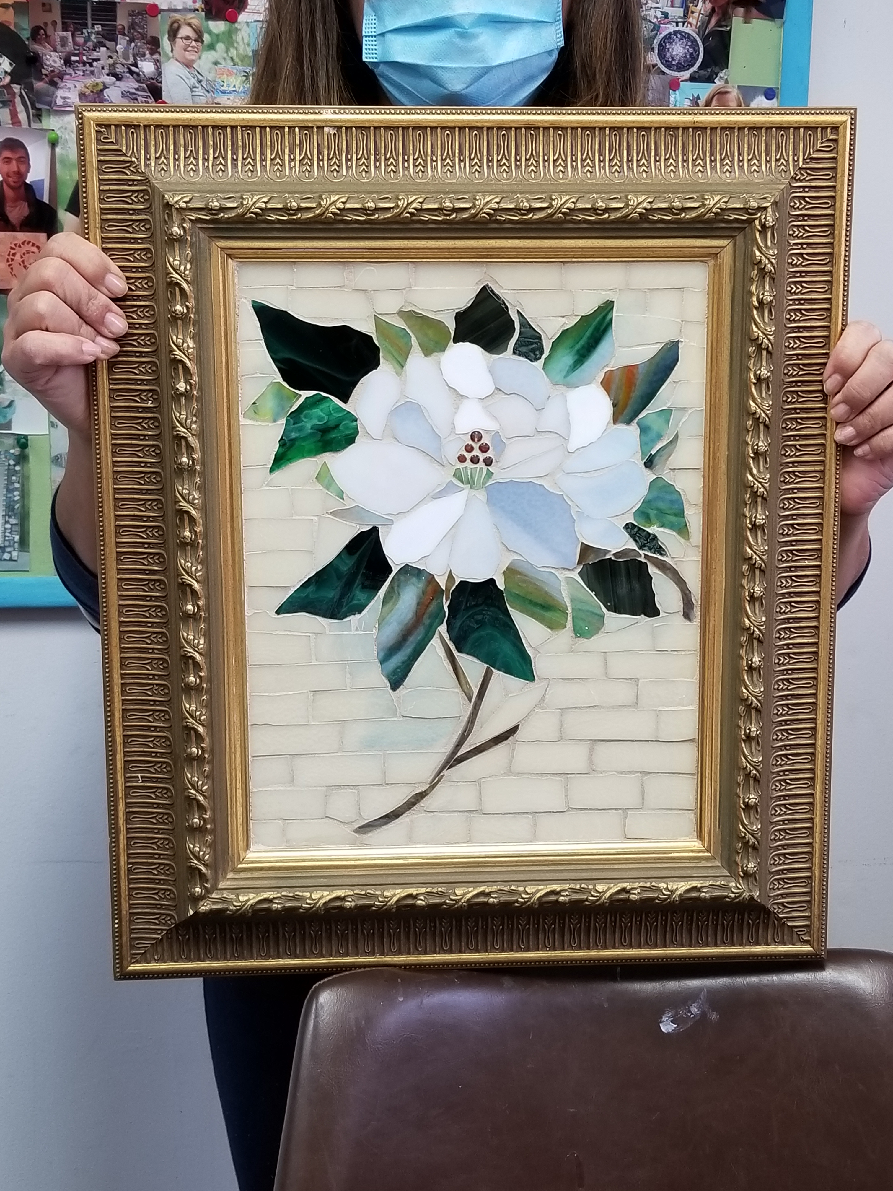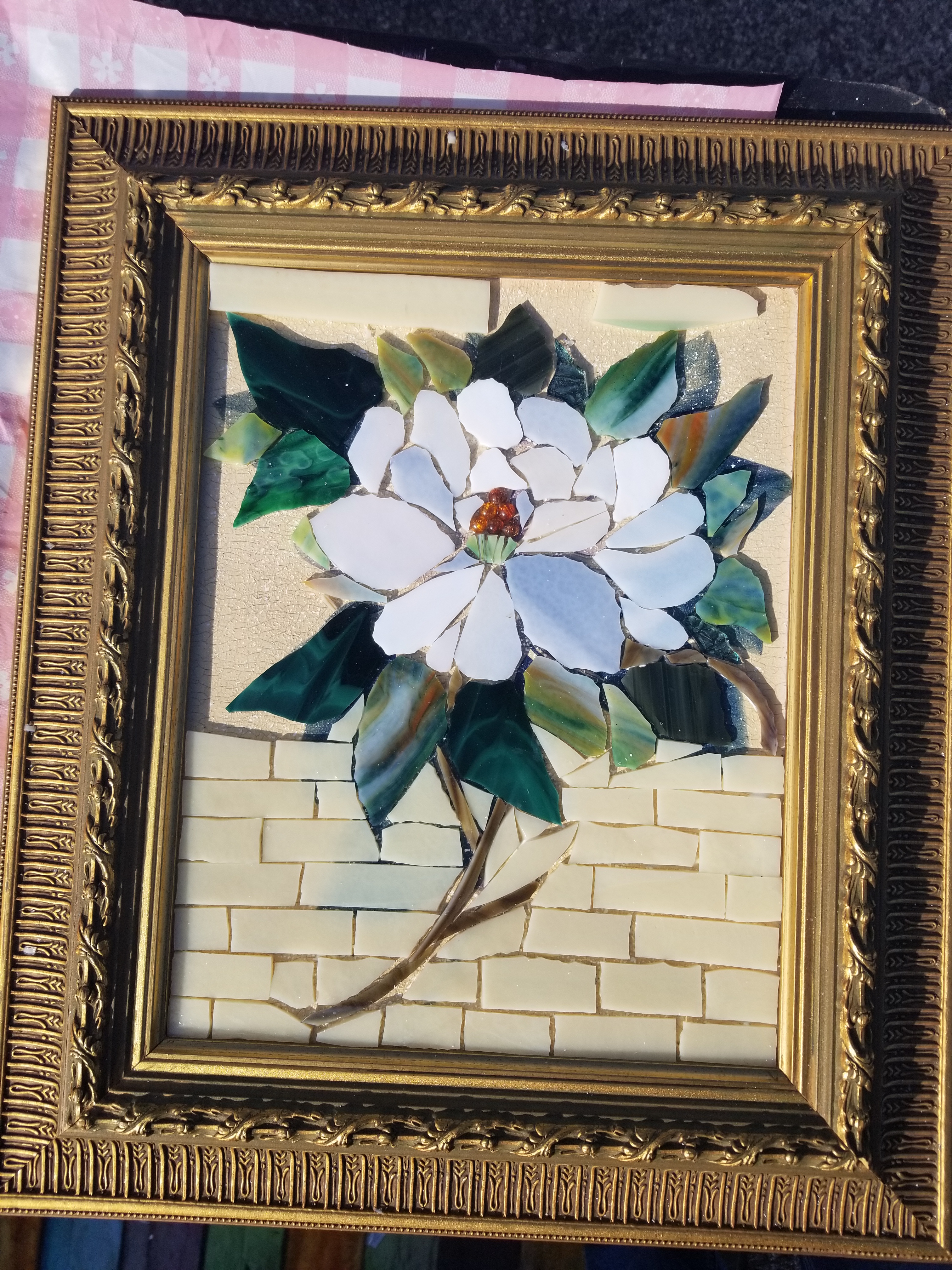 flowers in tiles, helping others, Mosaic projects, sick of laundry