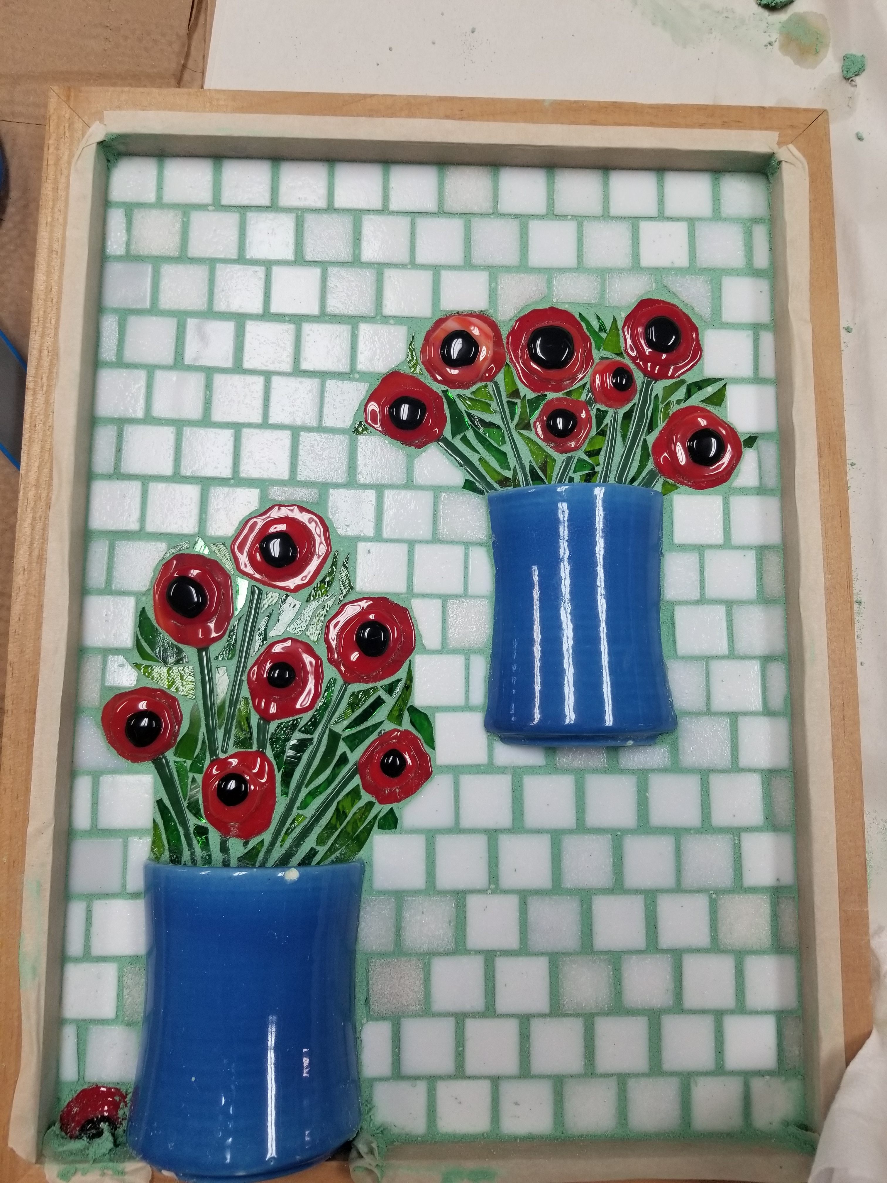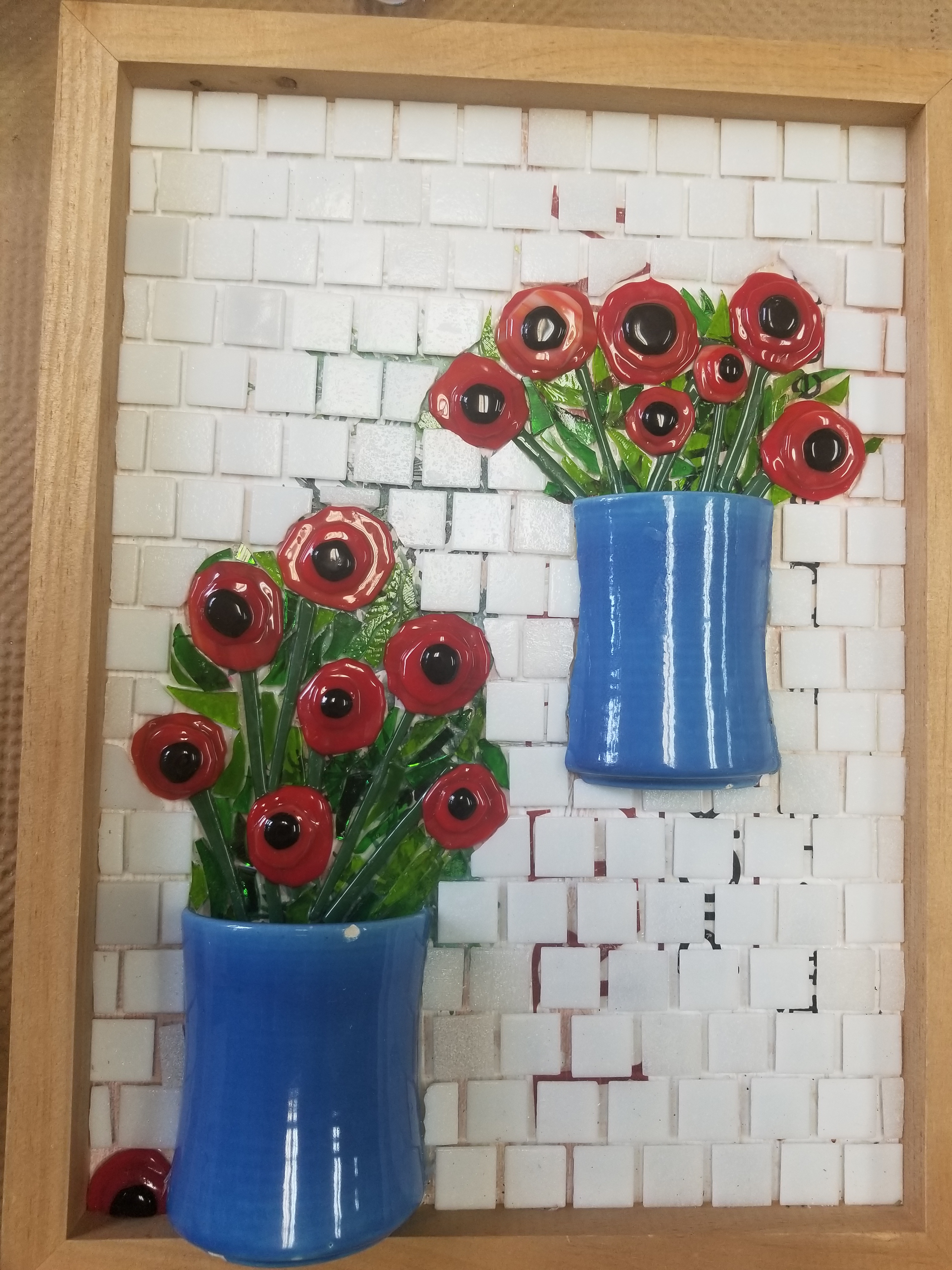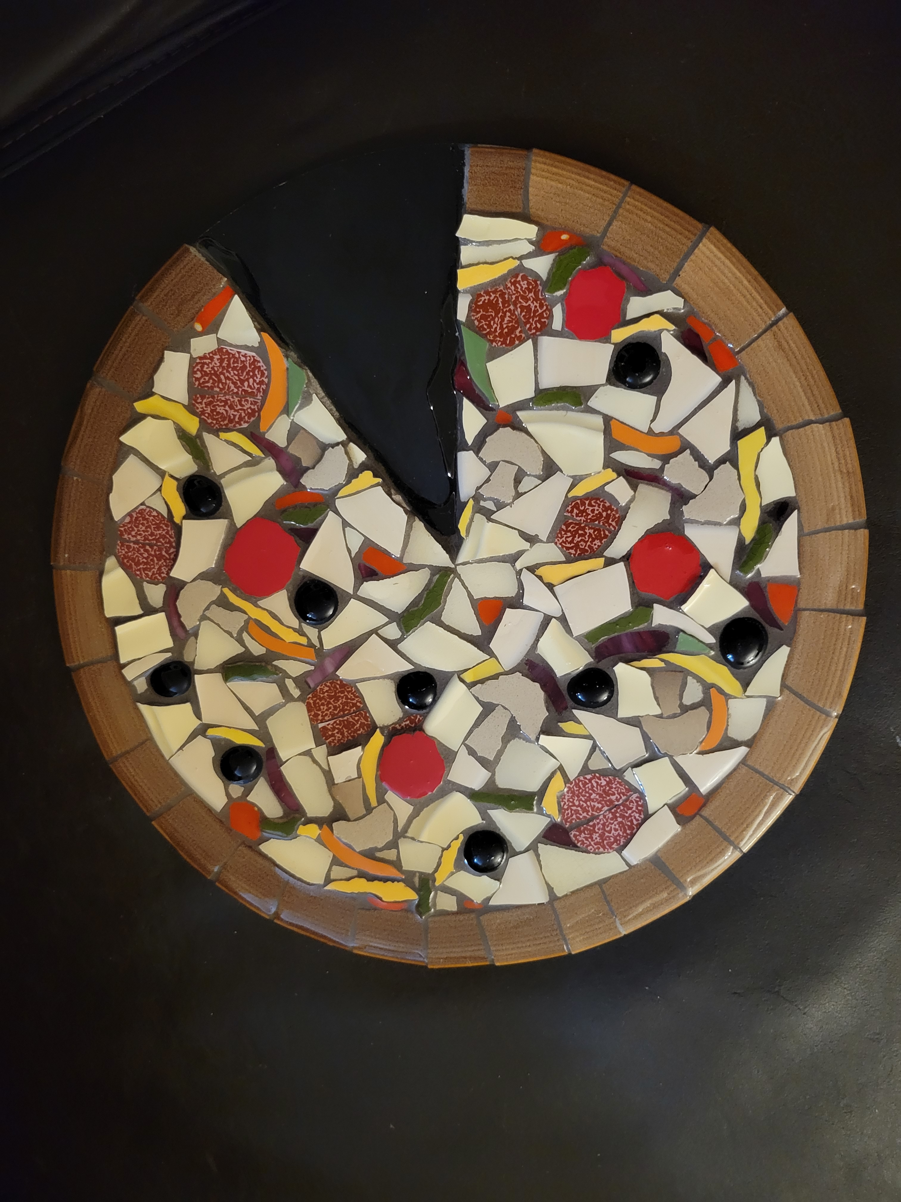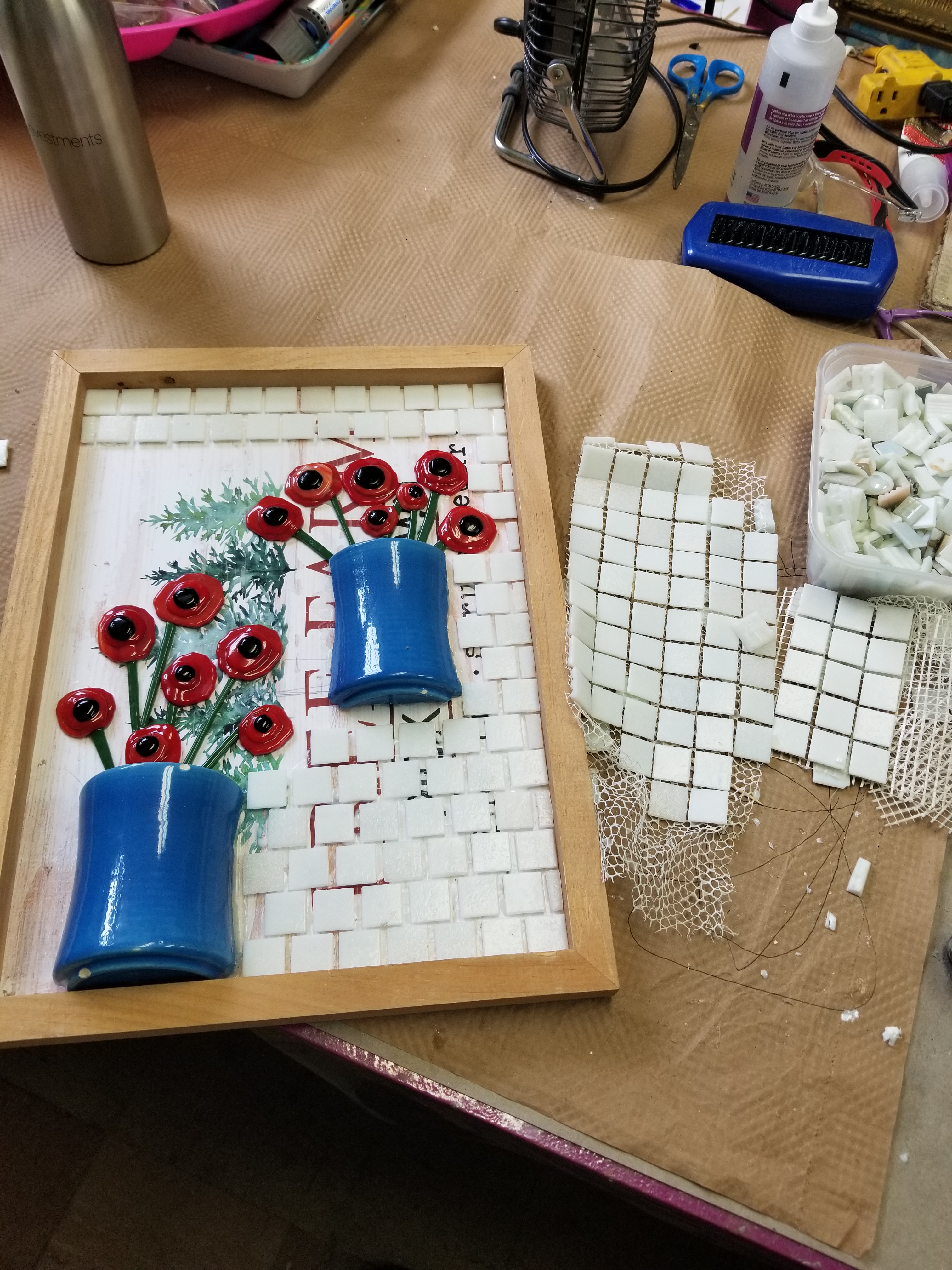 This is the last piece I did in 2022. It is out of broken plates. I made this at home and grouted at the studio.