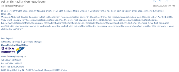 SCAM ALERT: Domain Name emails