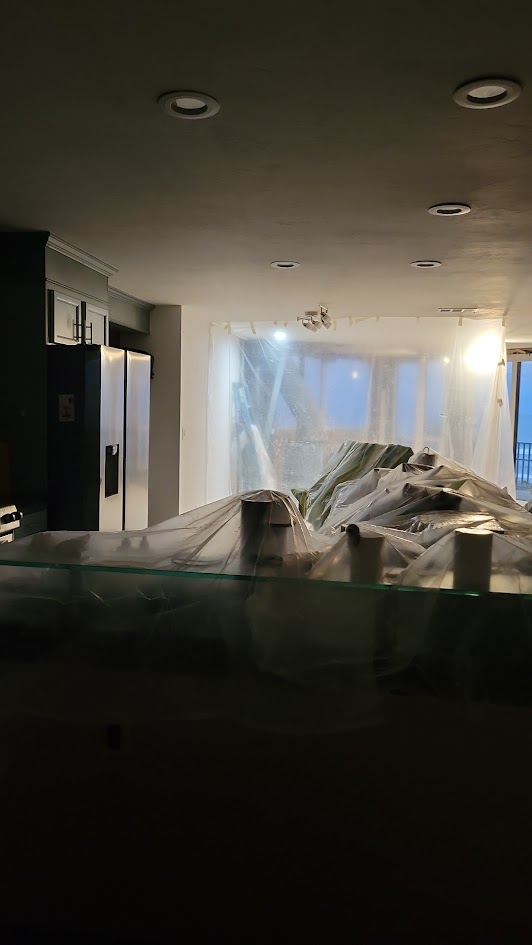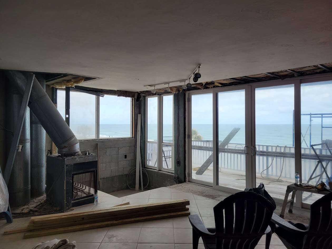 To renovate the exterior and correct all the damage in the balcony and exterior, they had to come into the apartment several feet. In doing that, there was damage to the floors, ceilings, walls and electrical work.