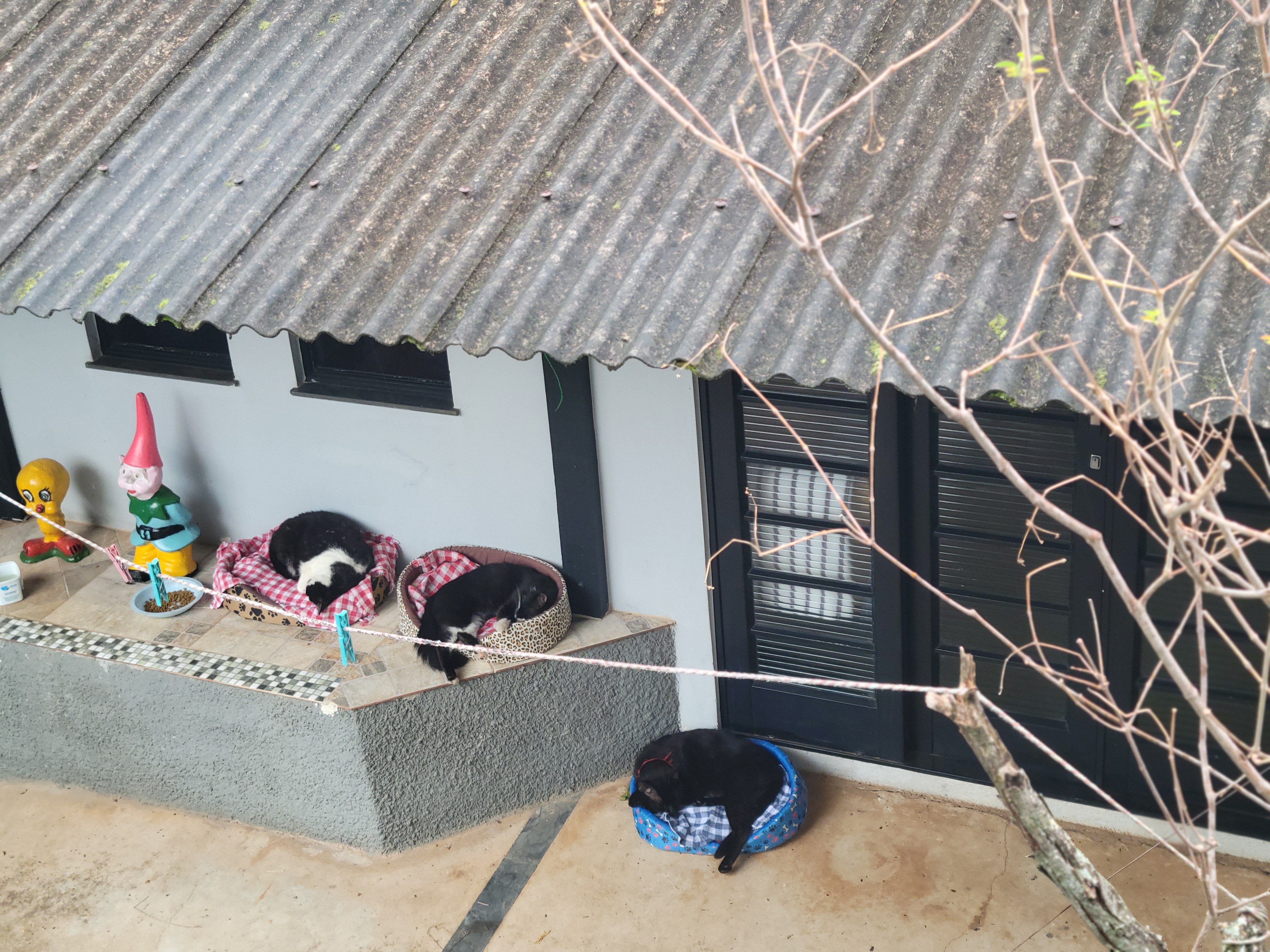 Last week the lady moved away and the 3 cats stayed behind.  Instead, she took 3 other cats that she had acquired from another neighbor after she had moved in.