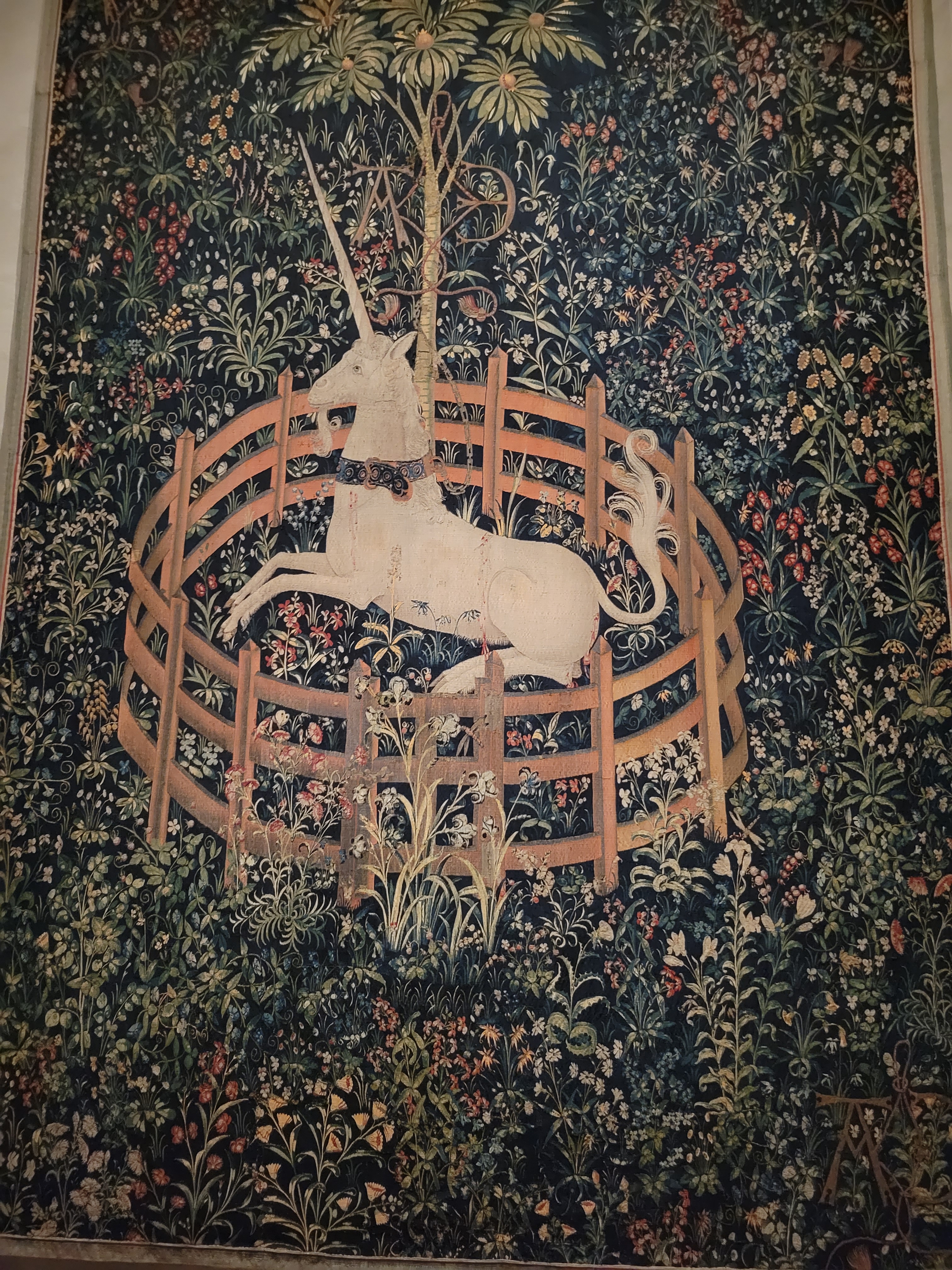 The museum mostly displays works from Western Europe. Besides paintings it includes sculptures, stained glass, manuscripts, tapestries, wood and metalwork. There is also an outside area with an herb garden, with more than 250 species of herbs cultivated in the Middle Ages.