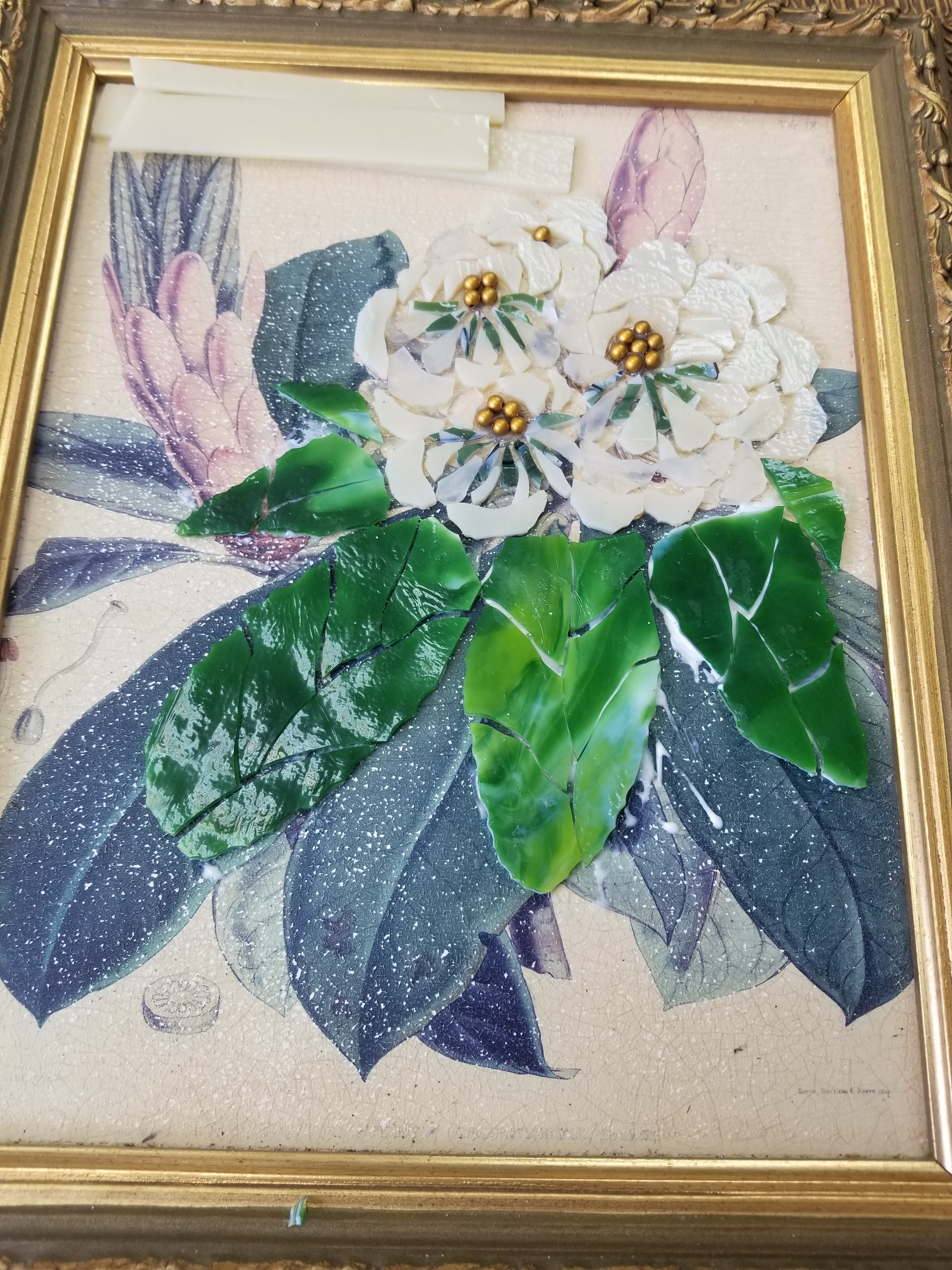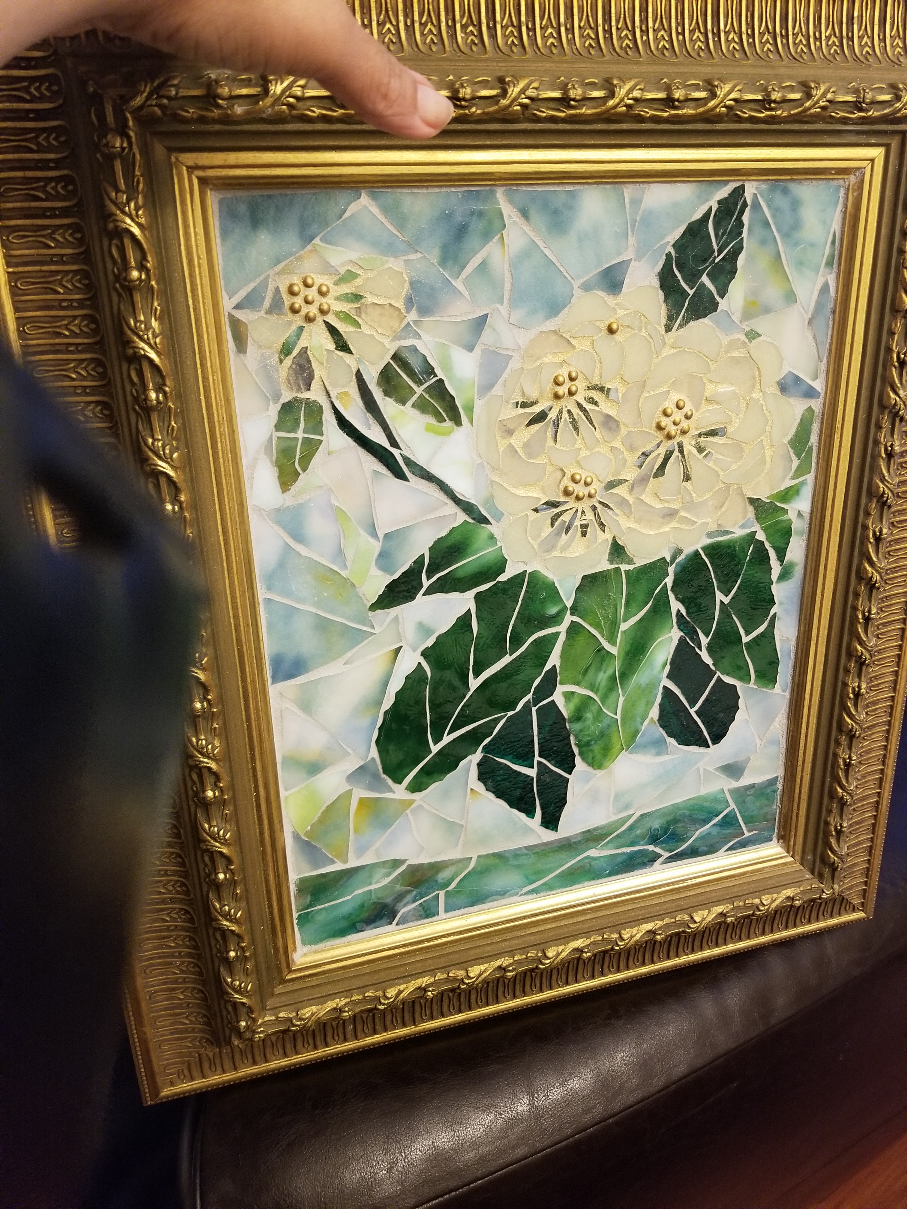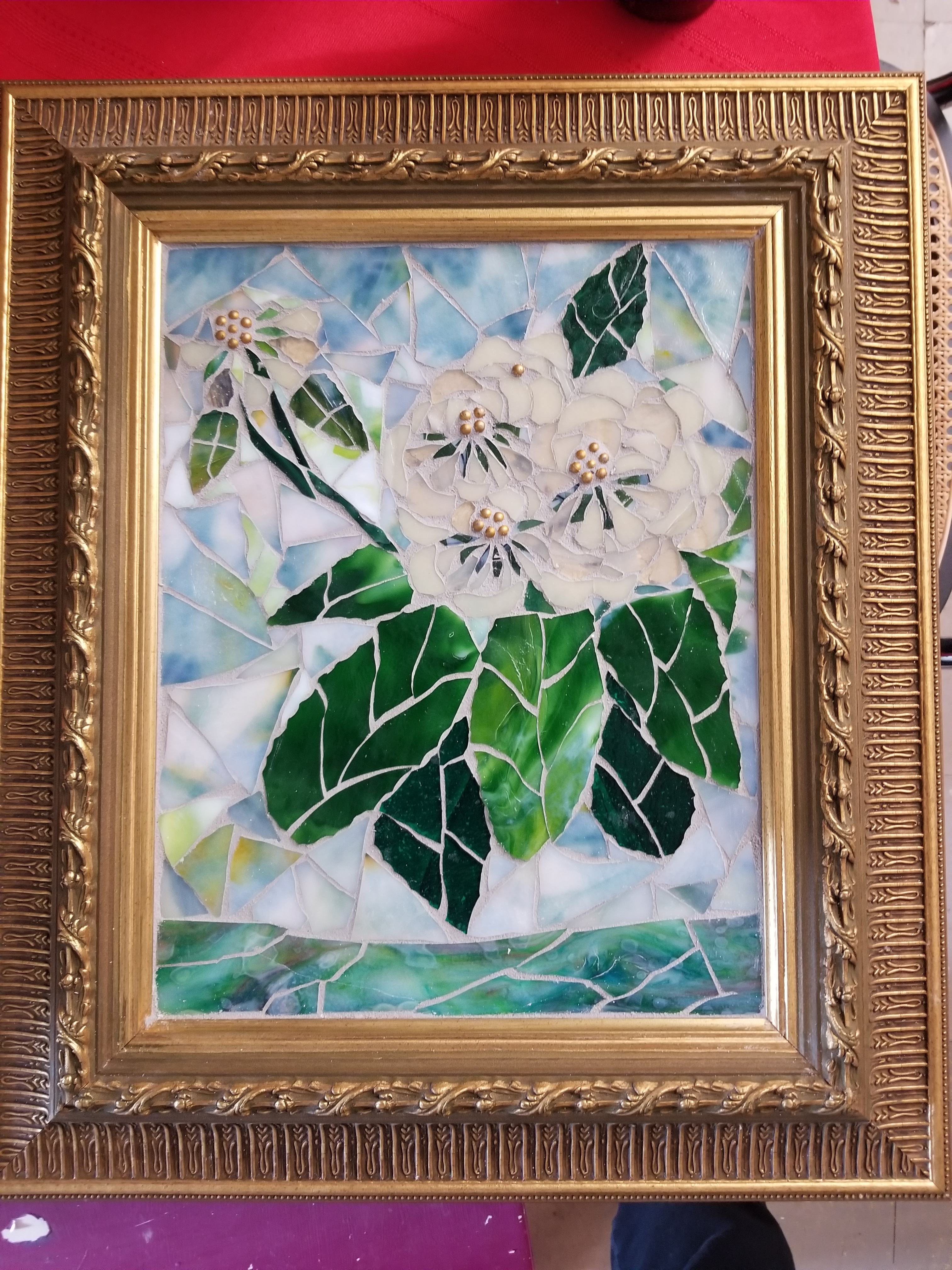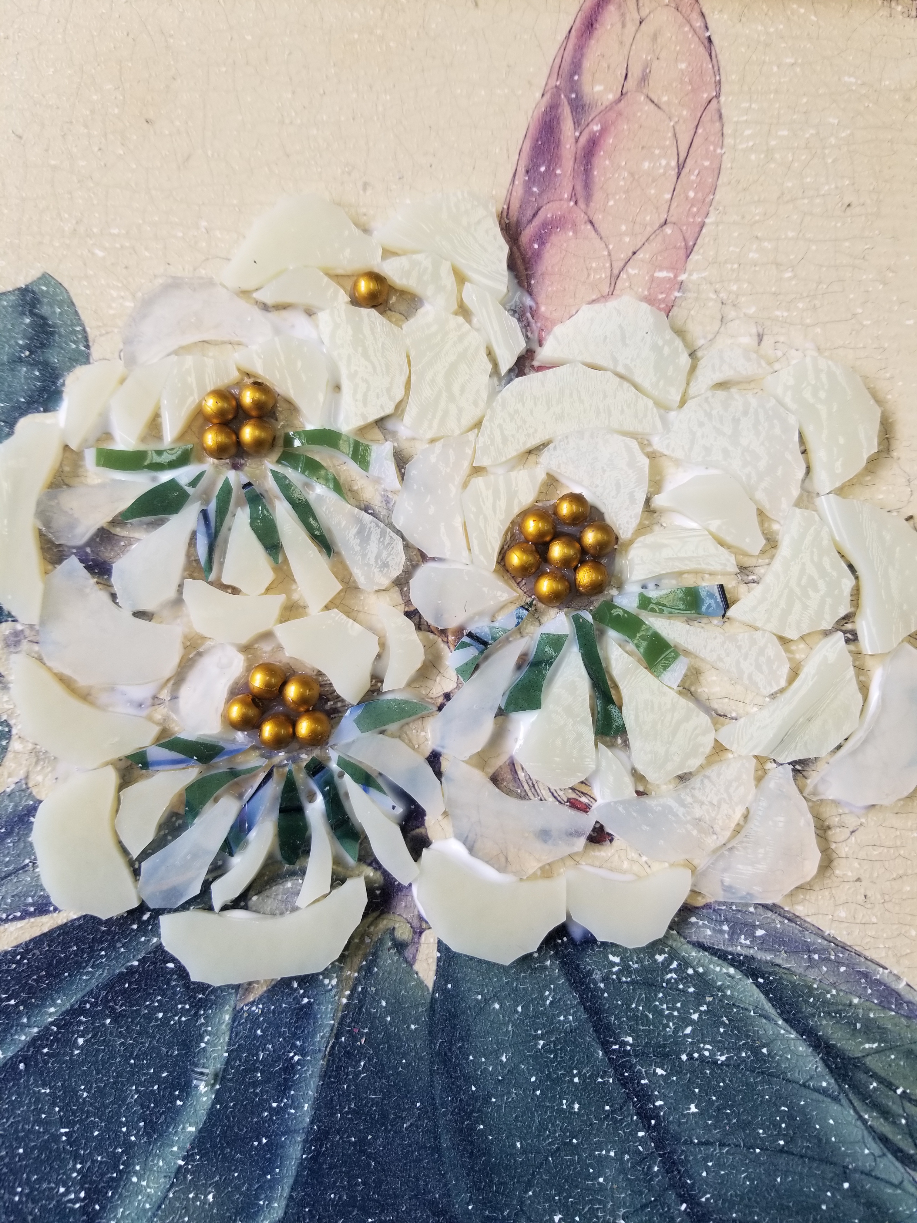 November/December: This was based on a watercolor picture. It is very hard to translate watercolor to mosaic. I am happy with this first attempt.