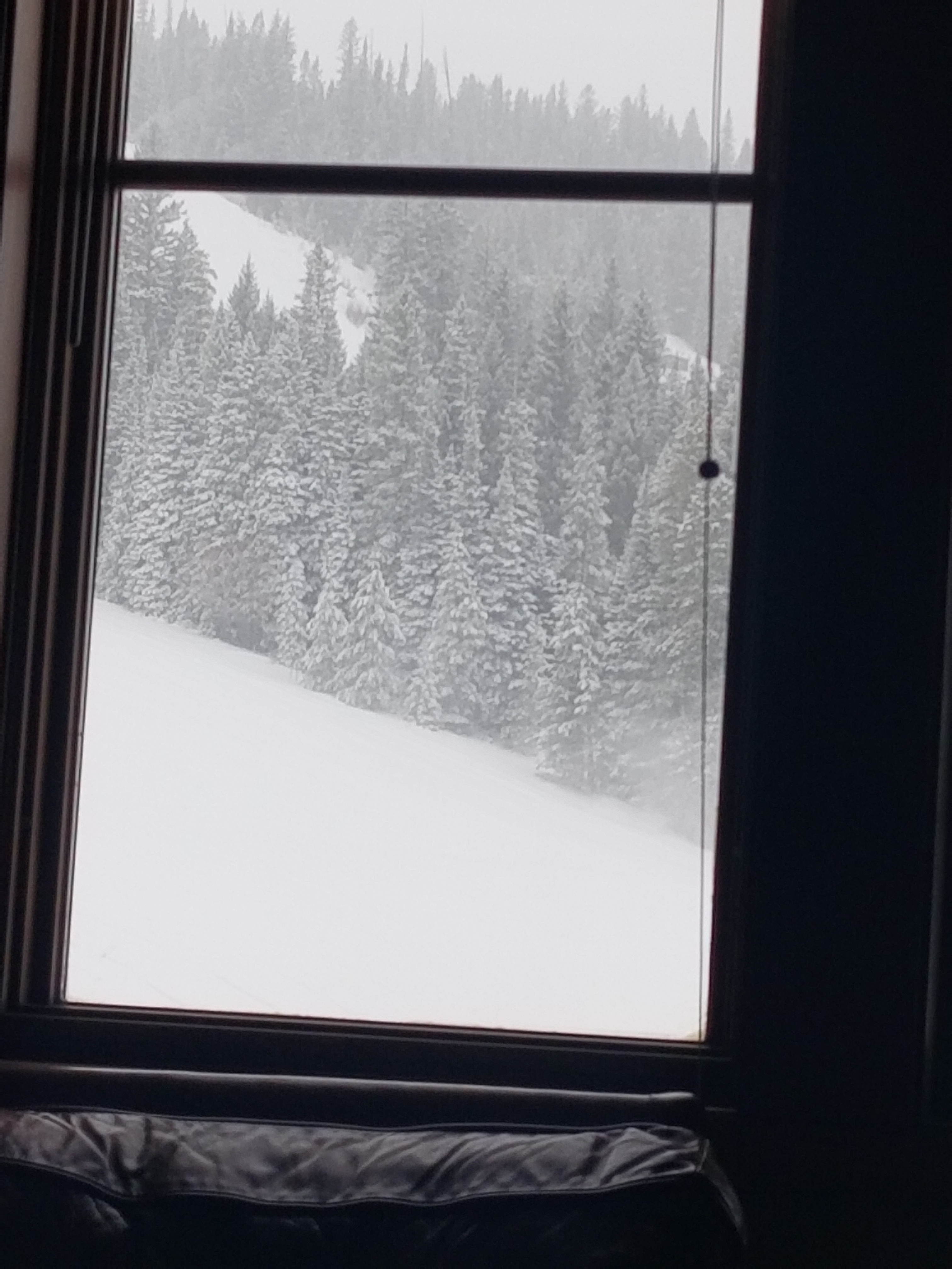 Day 3, Thursday: I woke up with a beautiful, majestic snow falling. It was magnificent and awe-inspiring! But I must confess, it was inspiring me to stay indoors.  I considered not going skiing.  I considered the cold, it felt so cozy inside.  I considered the hassle of the equipment, the heavy boots, the skis.  I considered that pang of fear creeping in.  I considered just staying in the room and watching the snow showers from my window.  After all, no one would know.