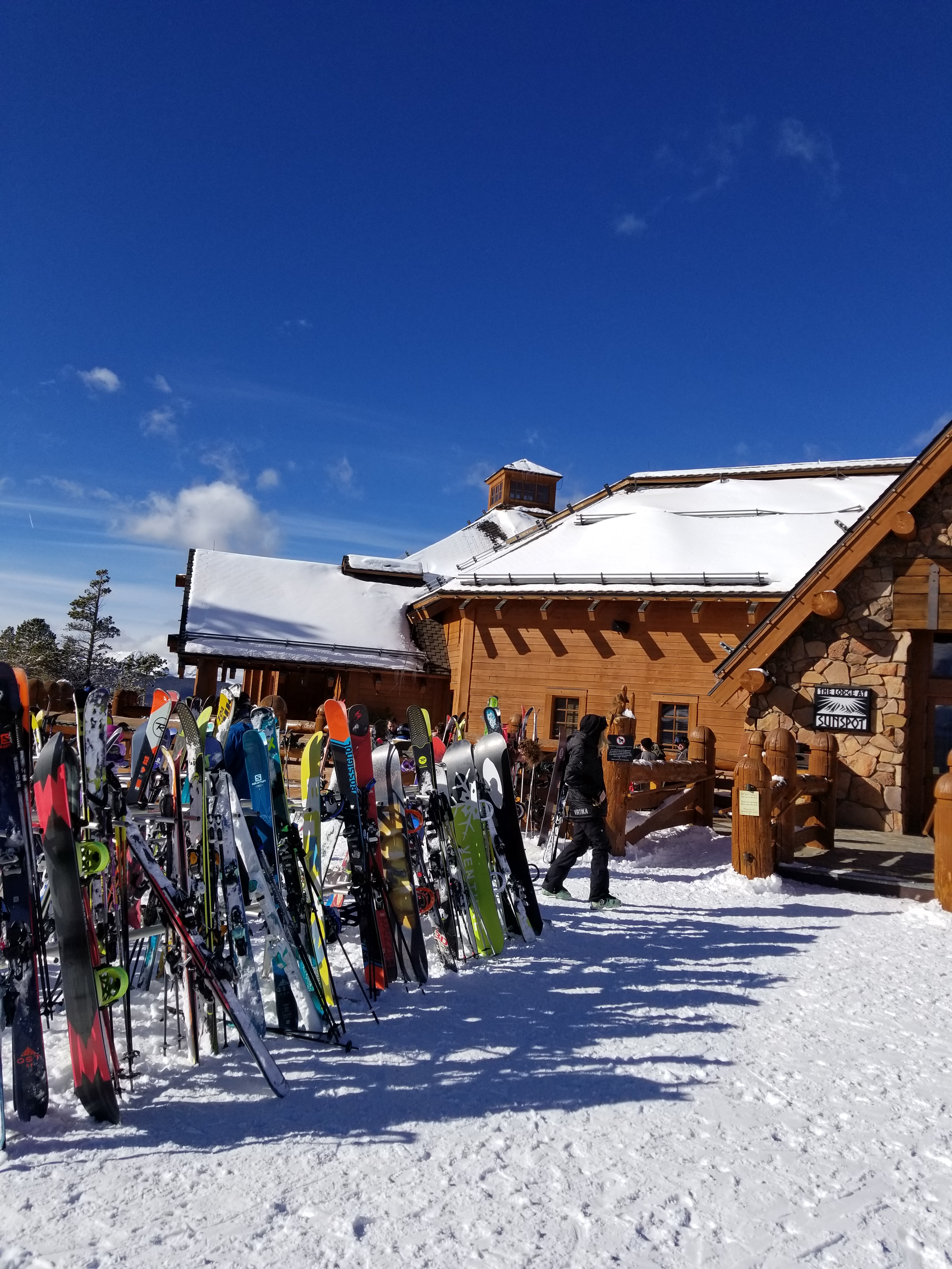 Day 1, Tuesday: Travel day. I left LaGuardia airport at 8 am. After the flight and a 1 and a half hour van ride I walked into the Zephyr Mountain Lodge at 3:30 pm. After leaving my bags in the room I went to get my skis for the next day.  I have my own boots and helmet, but I rent the skis.